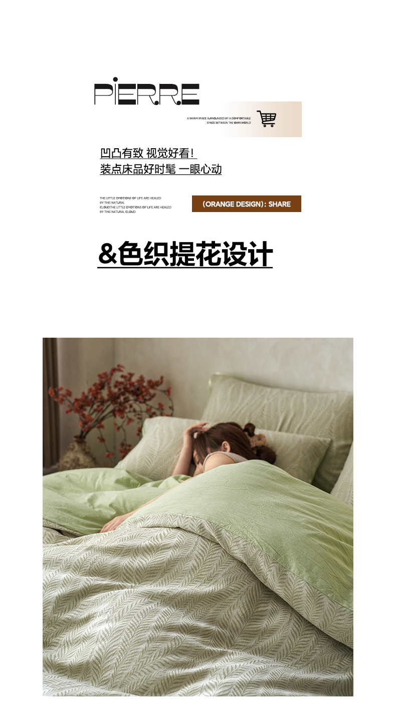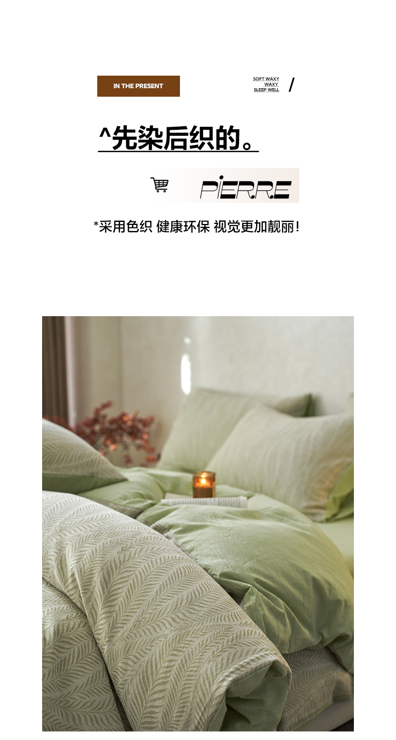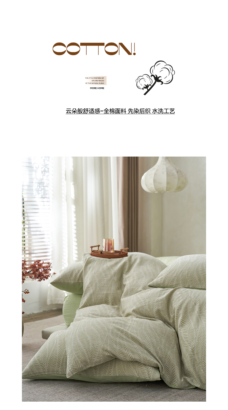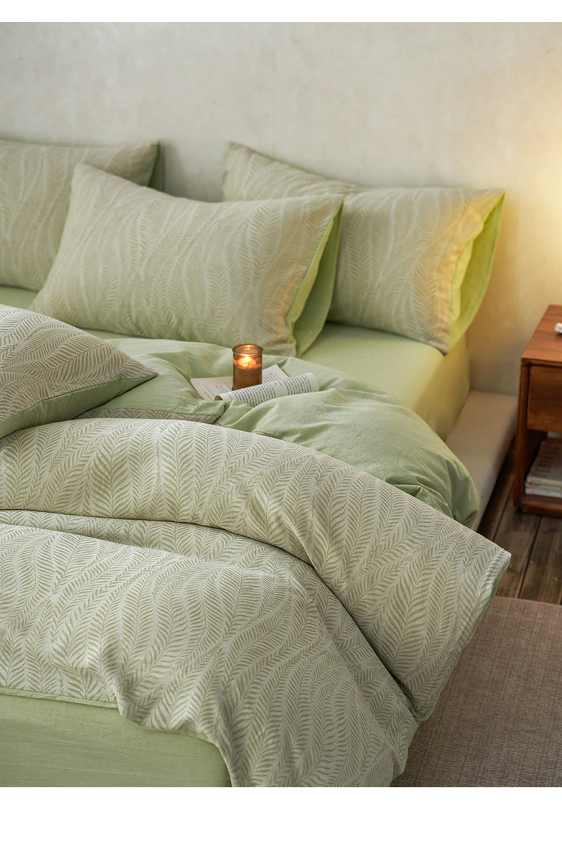 商品名称:如一 2026新款色织提花全棉水洗棉四件套第一批 叶笙-绿