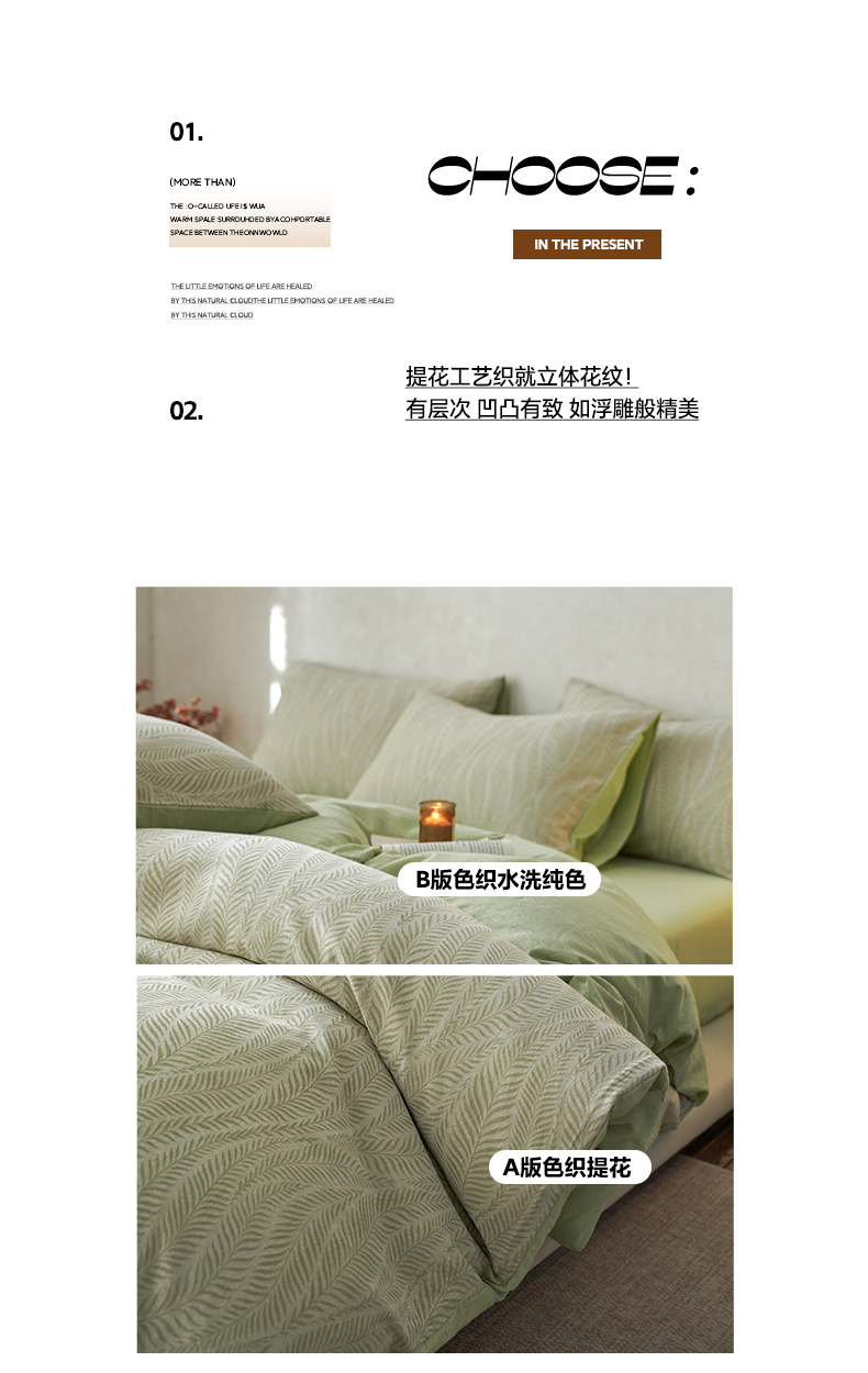 (总)如一 2026新款色织提花全棉水洗棉四件套第一批,叶笙-绿,叶笙-咖,兰序-绿,叶笙-粉,兰序-紫,兰序-蓝,兰序-咖