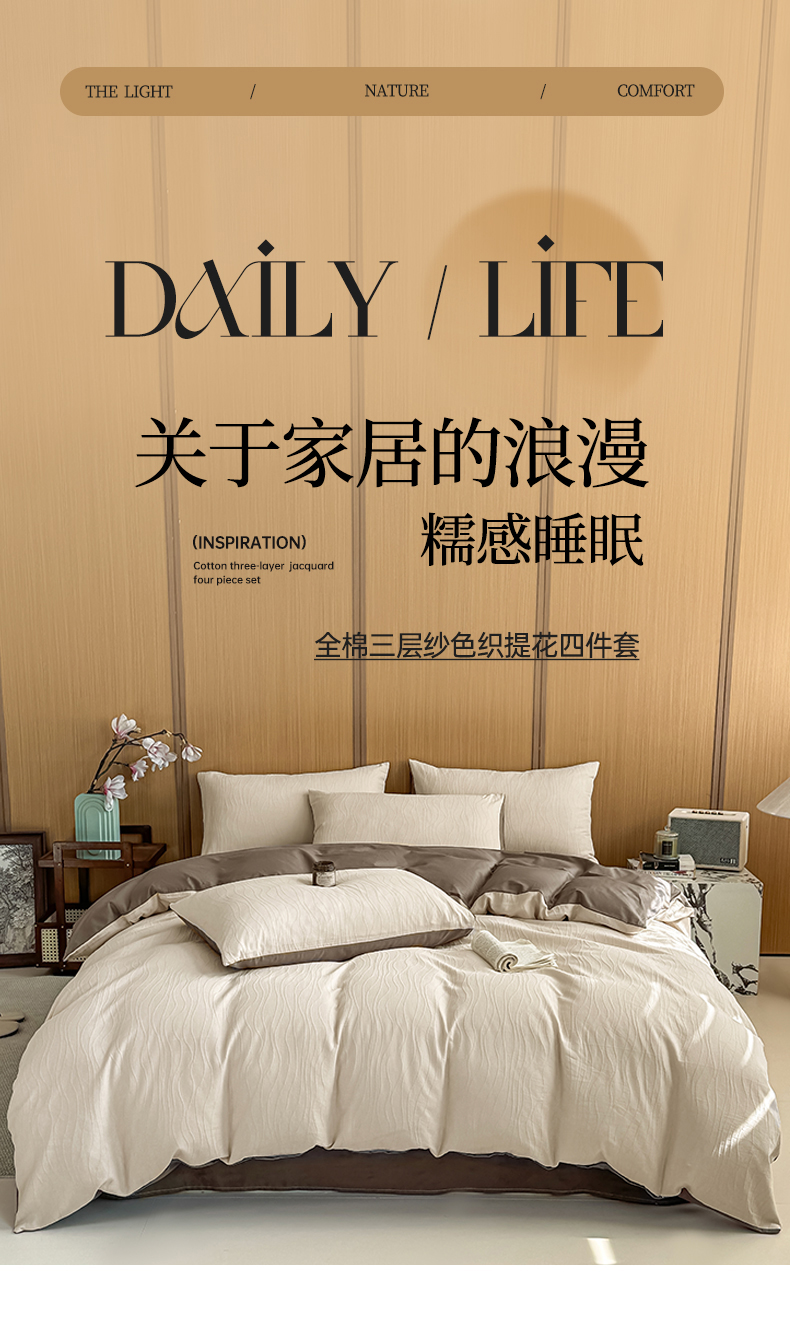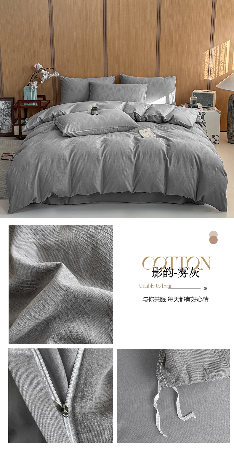 商品名称:(总)灰鲸 2026新款全棉纯棉三层纱色织提花四件套