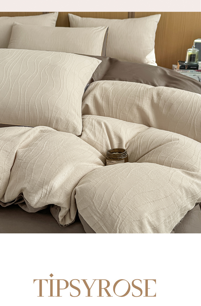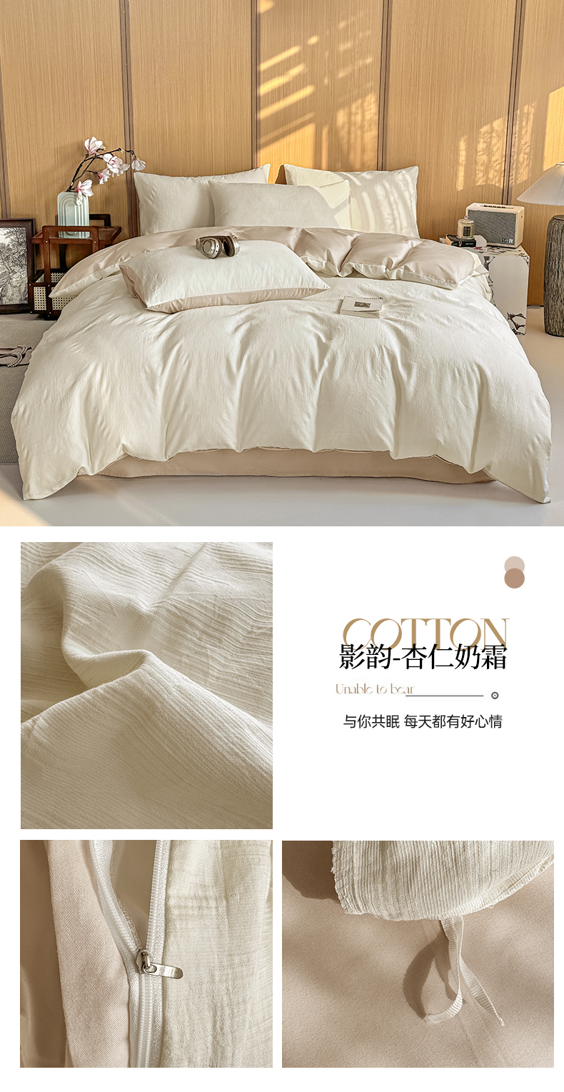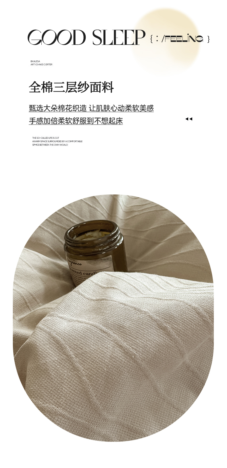 (总)灰鲸 2026新款全棉纯棉三层纱色织提花四件套