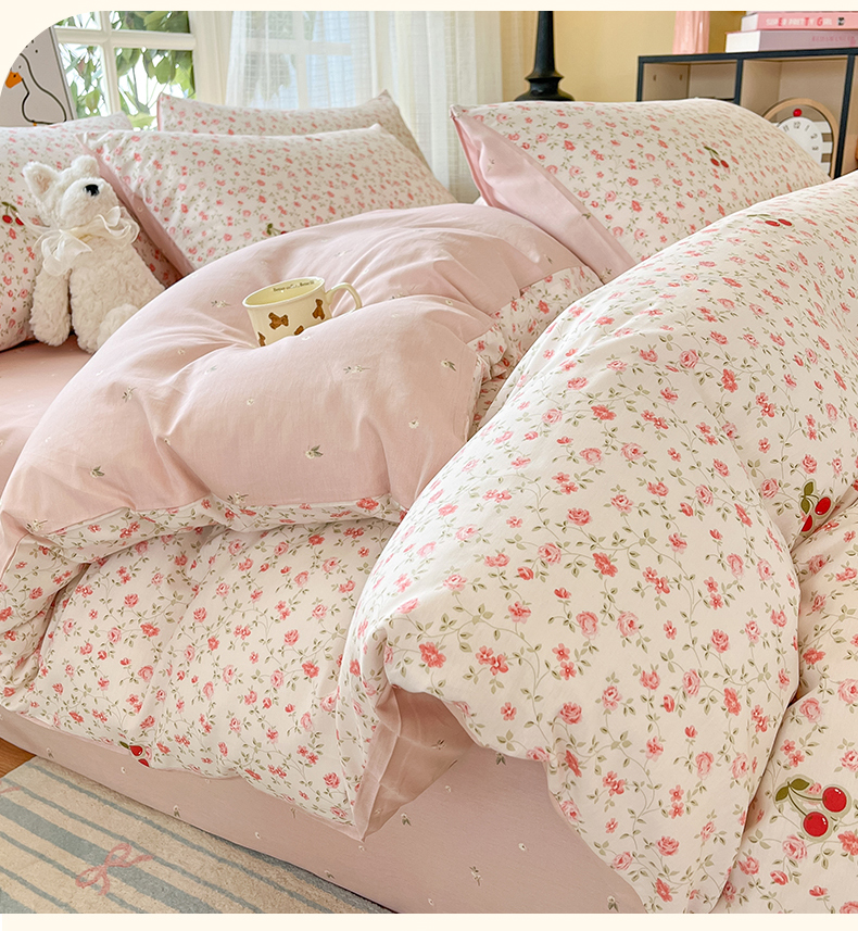 (总)睡美美家纺 2026新款水洗云朵棉亲肤花边款四件套,岛屿,蝴蝶,花序,花影,桃枝,田园,小碎花,星星人