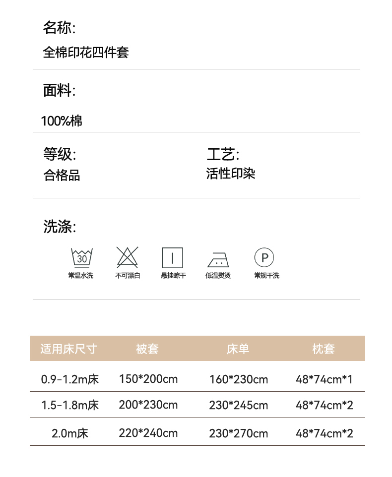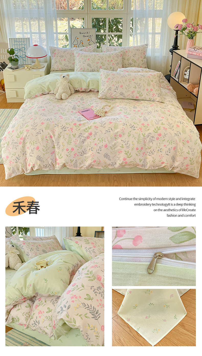 商品名称:(总)睡美美家纺 2026新款全棉纯棉斜纹印花喷气小清新四季款学生三件套四件套