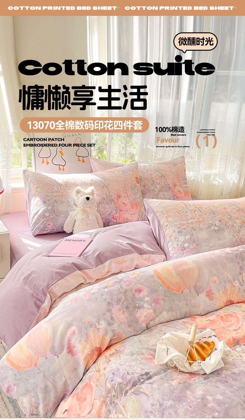 (总)睡美美家纺 2026新款13070数码印花全棉纯棉动物卡通三件套四件套,动物派对,萌宠乐园,梦幻城堡-绿,梦幻城堡-粉,花车小熊-蓝,洛克庄园,节日狂欢,花车小熊-紫,木马小象,人鱼公主,熊仔的玫瑰园,悠悠花园