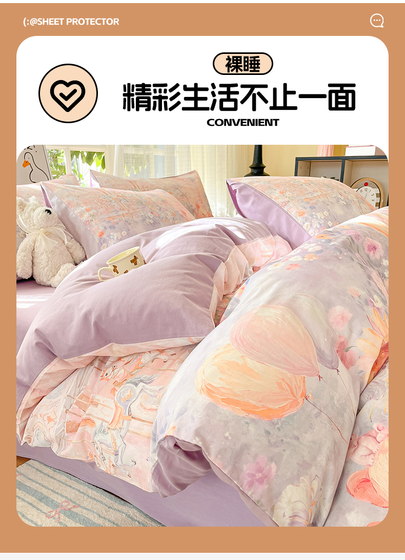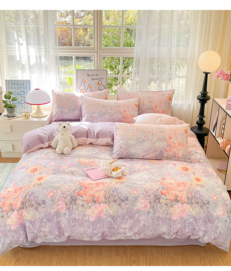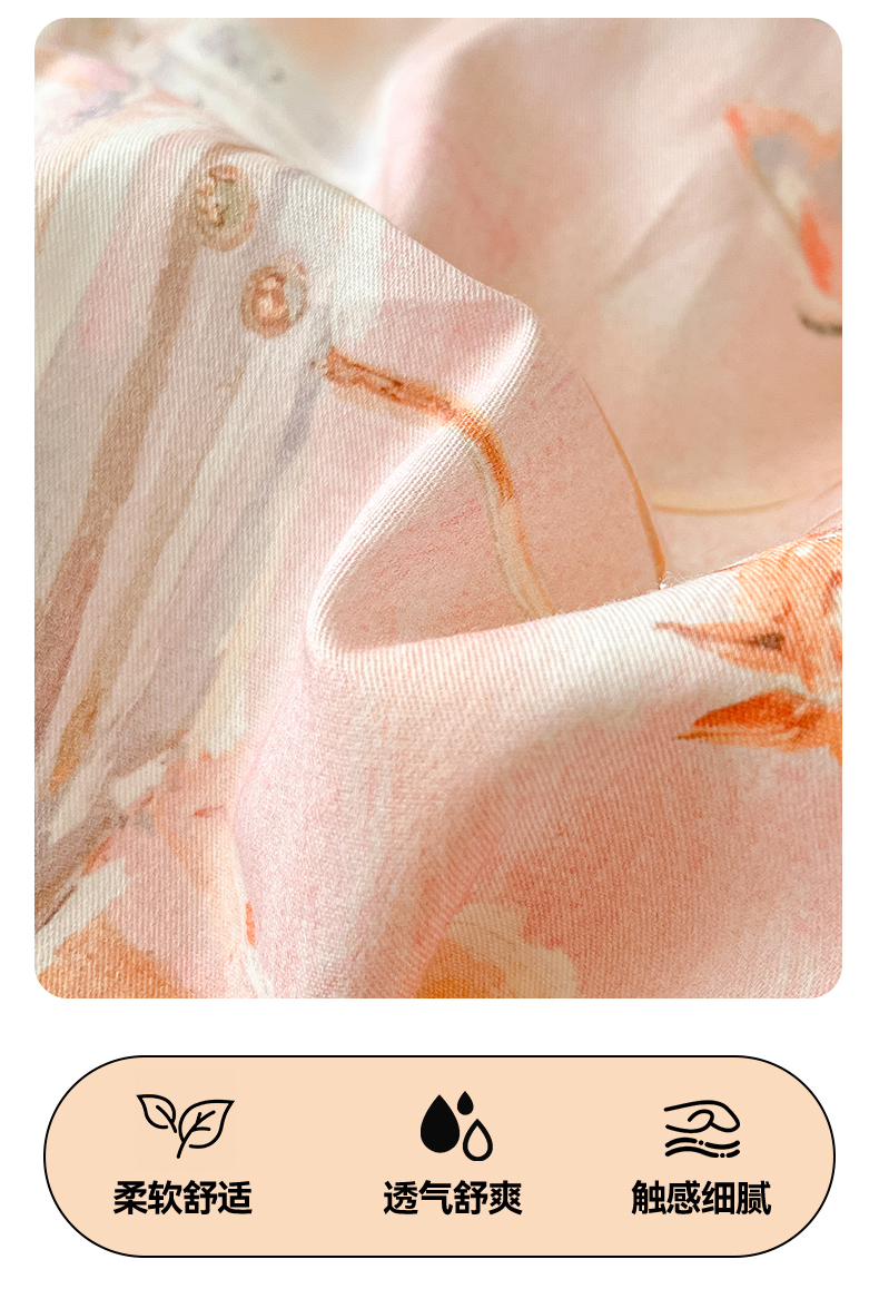(总)睡美美家纺 2026新款水洗云朵棉亲肤花边款四件套,岛屿,蝴蝶,花序,花影,桃枝,田园,小碎花,星星人