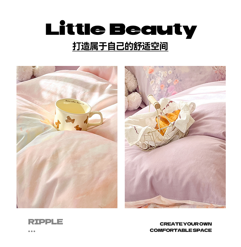 (总)睡美美家纺 2026新款A类古法水洗棉法式花边四件套,彩虹小马,春日絮语,春野,粉豹纹,粉雾蔷薇,粉漾,格纹小象,海盐奶酪,花千朵,花田兔,灰棠,剪秋,乐町小马,美式,梦华录,梦幻格趣,梦幻灰,梦露,木马乐园,奶萌喵咖,南瓜童话,俏皮狗,青花瓷,赛琳娜,森屿,疏影,水晶葡萄,甜粉小窝,甜心萌宠,小黄花,小幸运-蓝,絮语,鱼多多