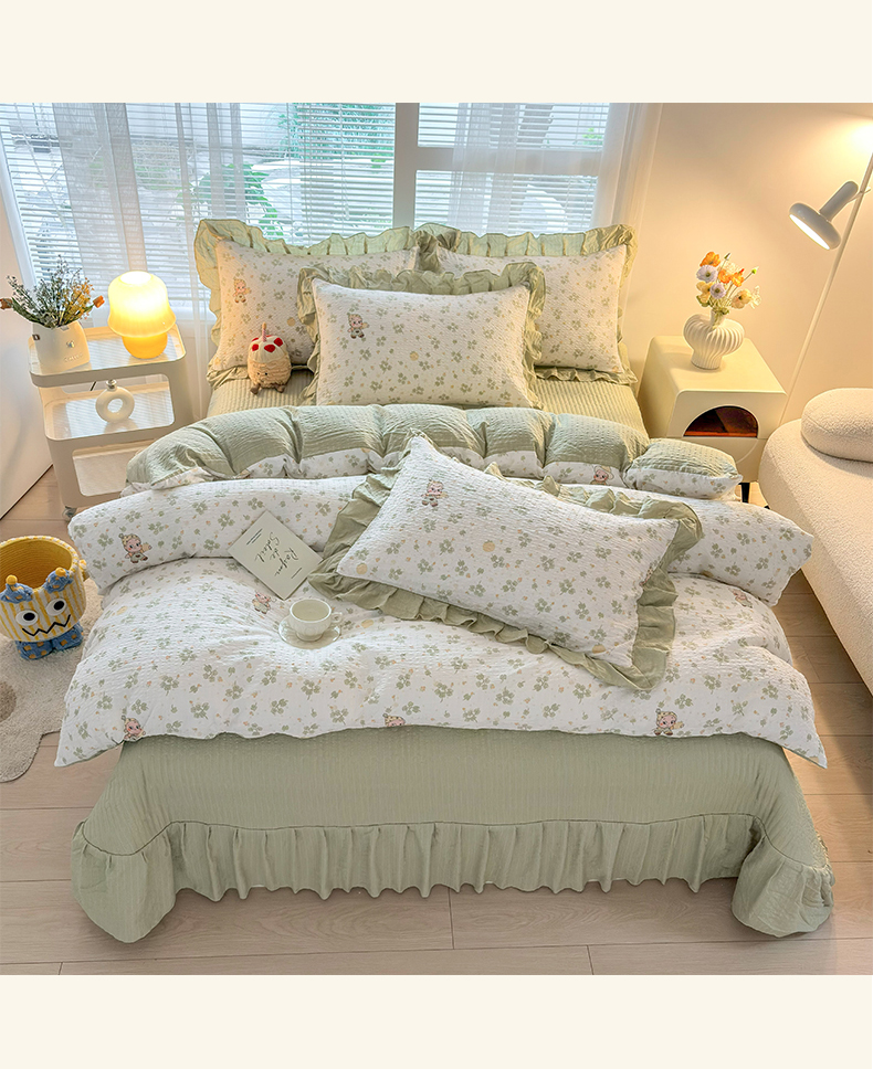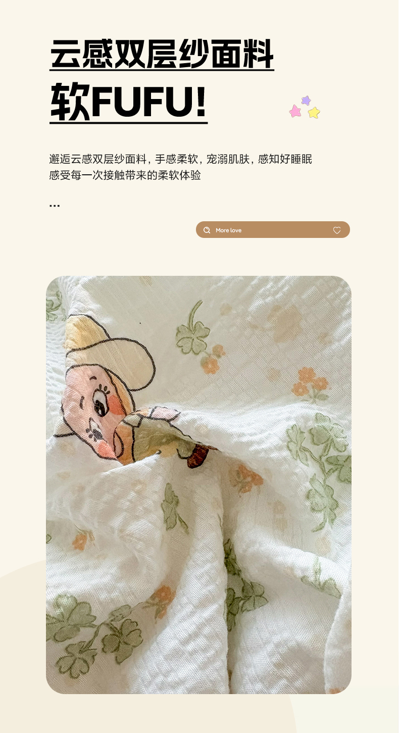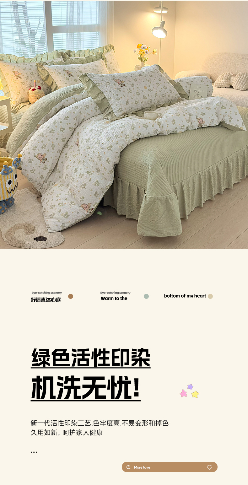 商品名称:民新家纺 2026新款泡芙双层纱床盖款四件套 幸运星
