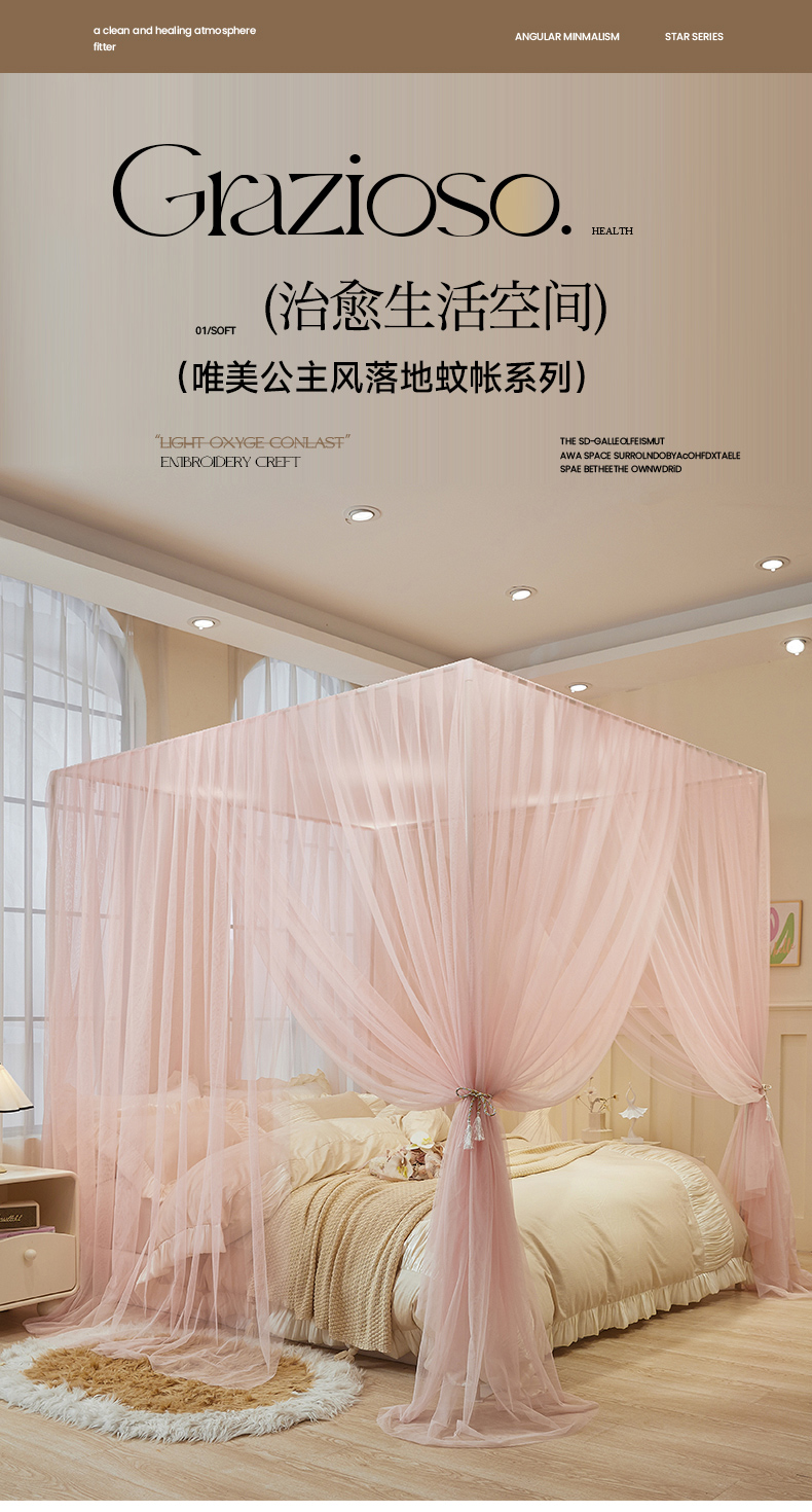 (总)青竹苑 2026新款简约落地蚊帐,落地简约-冰莓蓝 ,落地简约-奶杏 ,落地简约-柔白 ,落地简约-鼠尾草绿 ,落地简约-樱花粉