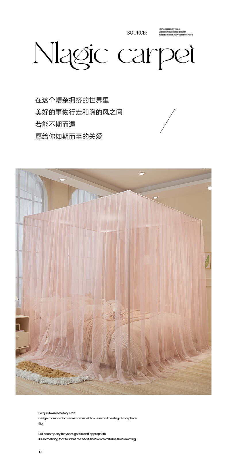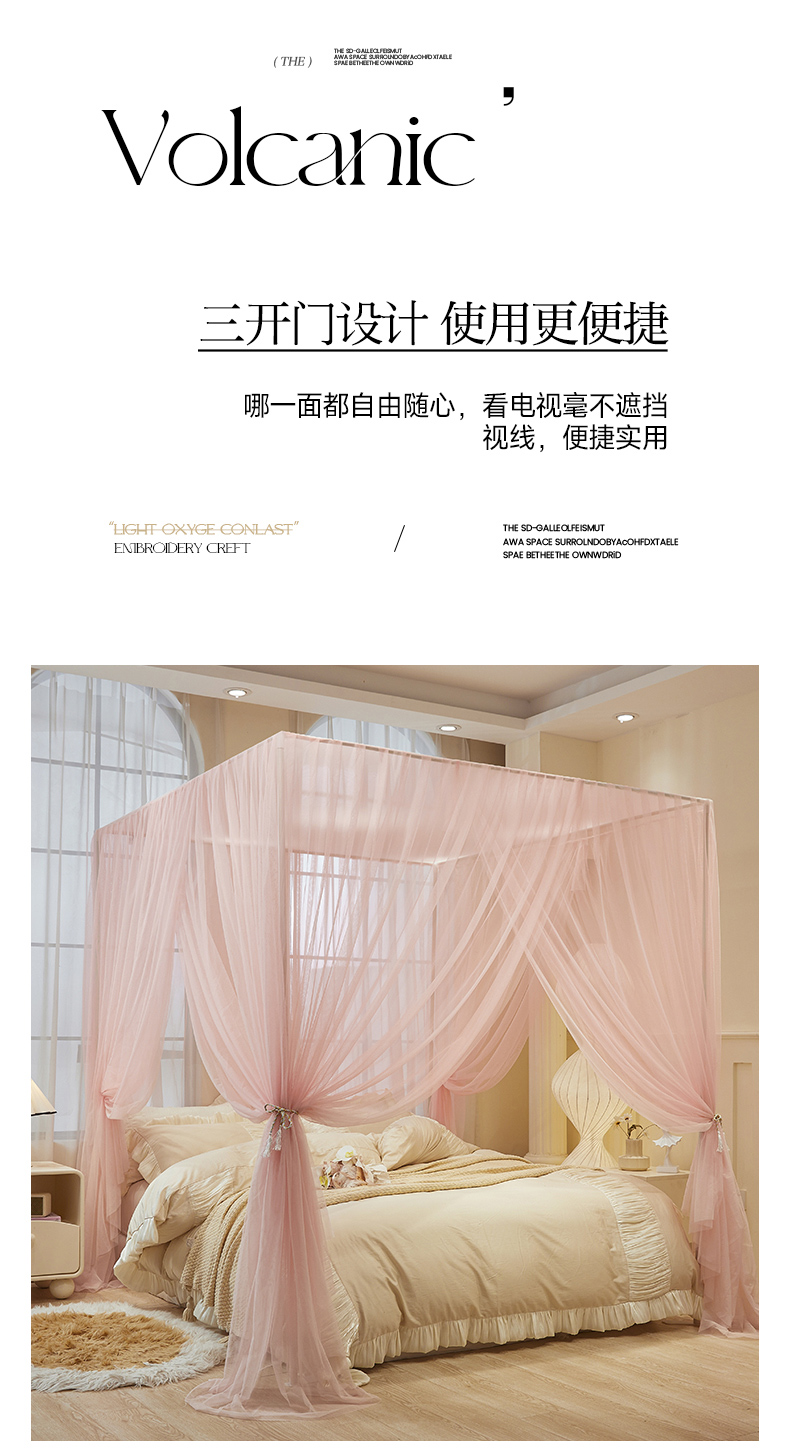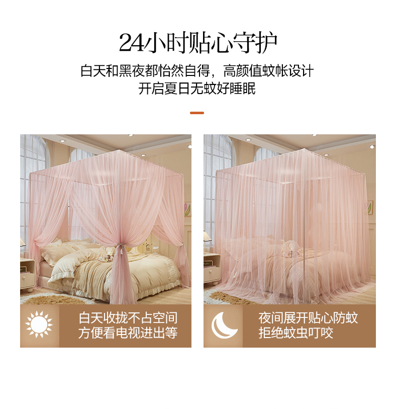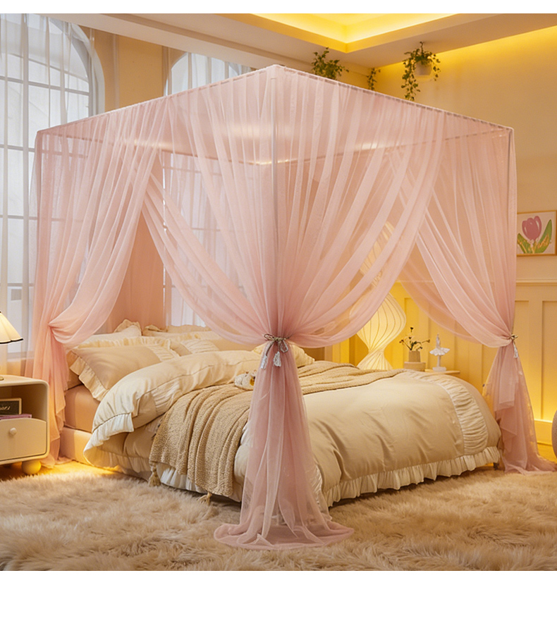 商品名称:青竹苑 2026新款简约落地蚊帐 落地简约-樱花粉