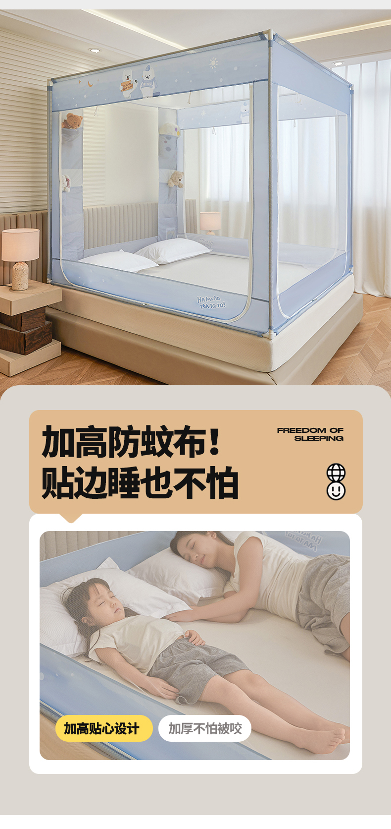 当前位置: 91家纺网 > 商品网购 > 床上用品 > 蚊帐 > 坐床式蚊帐 > 青竹苑 2026新款贴布口袋款床笠底坐床蚊帐 北极熊熊
