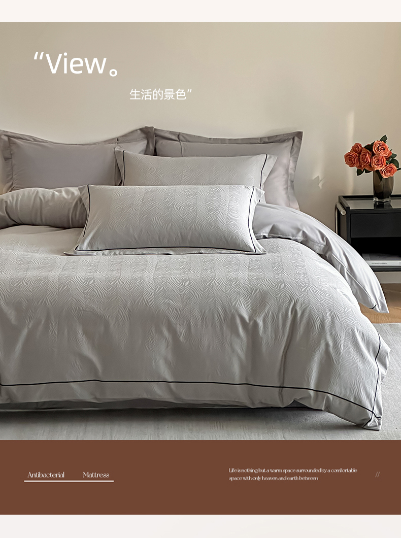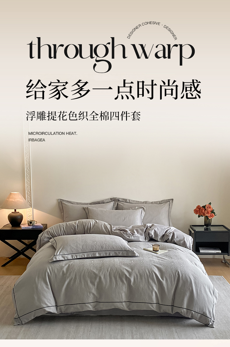 商品名称:首尔家纺 2026新款浮雕提花色织全棉四件套 斑马纹-高级灰