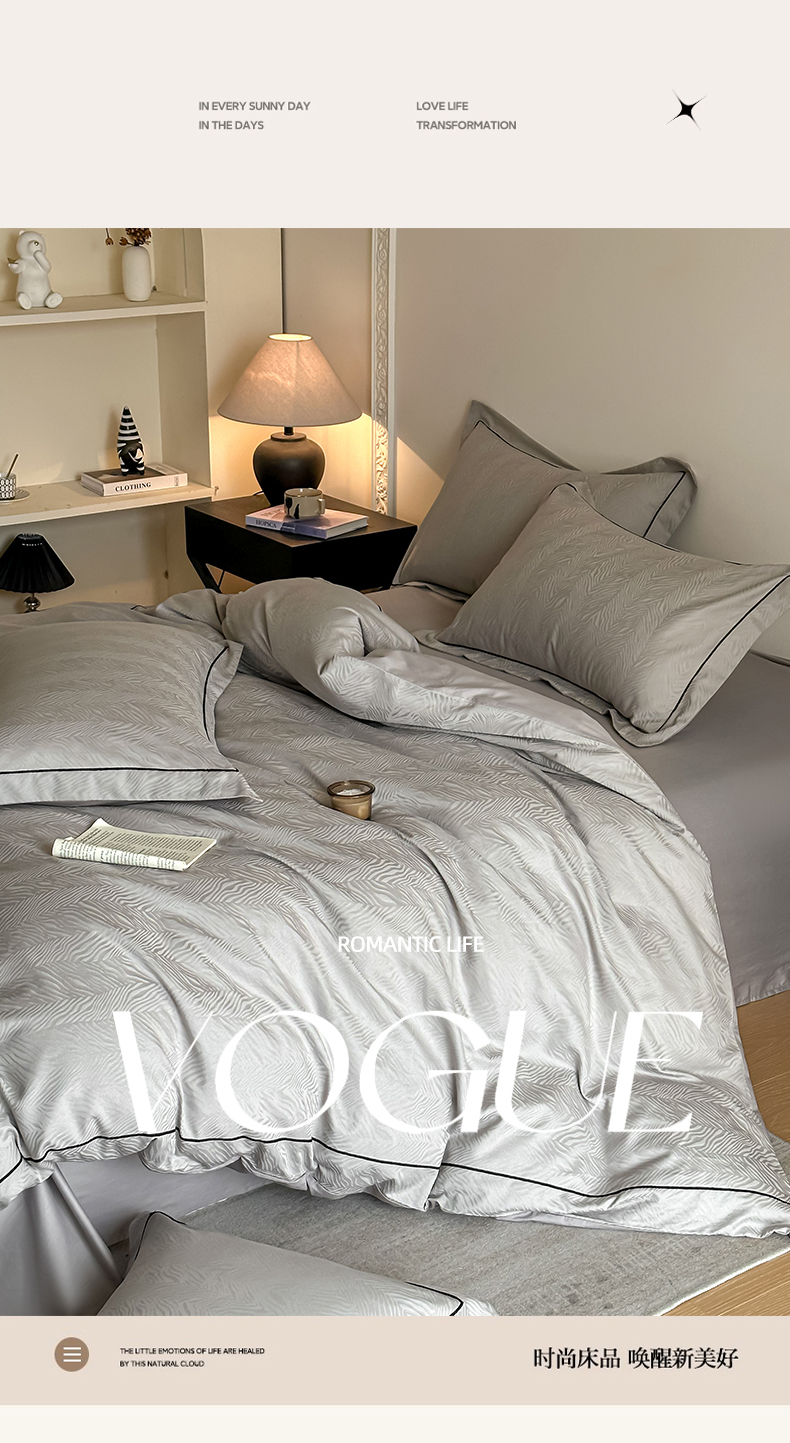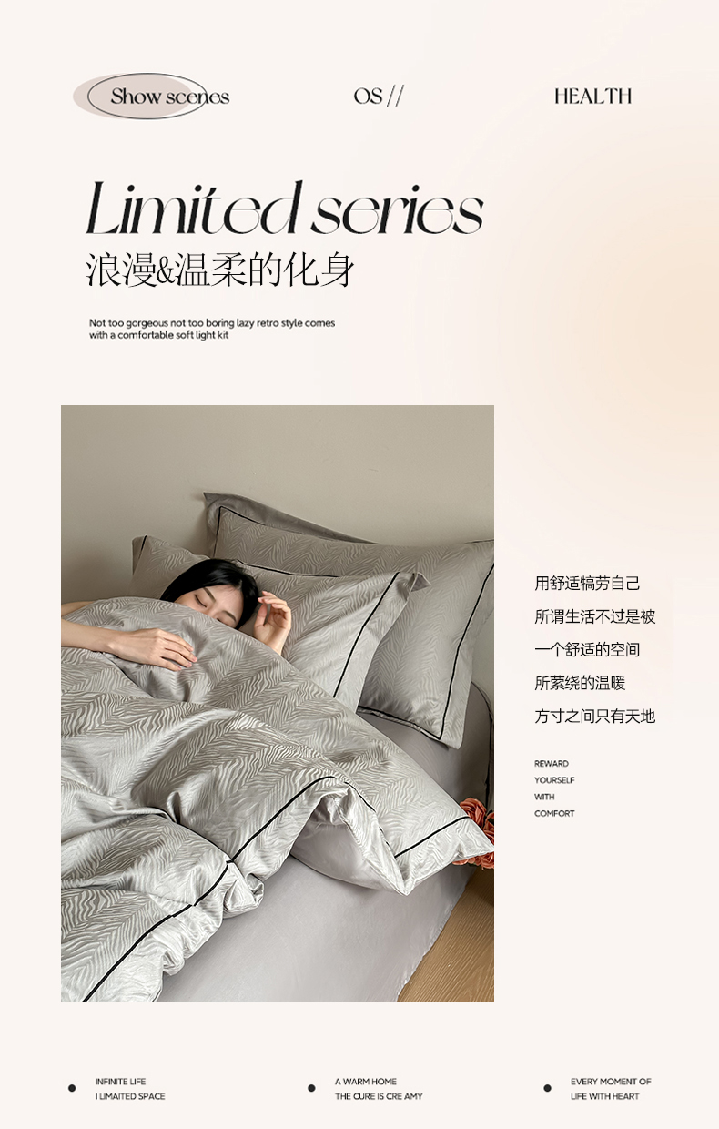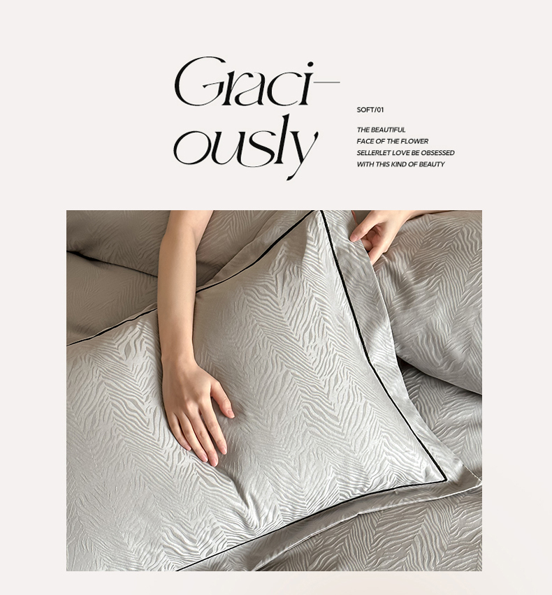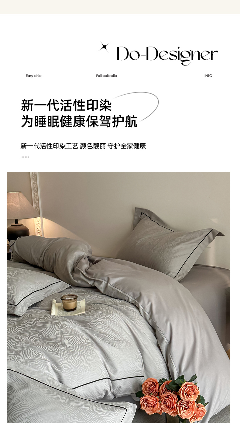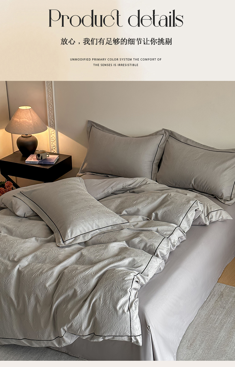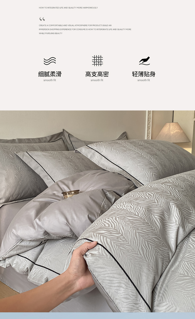 首尔家纺 2026新款浮雕提花色织全棉四件套 斑马纹-高级灰
