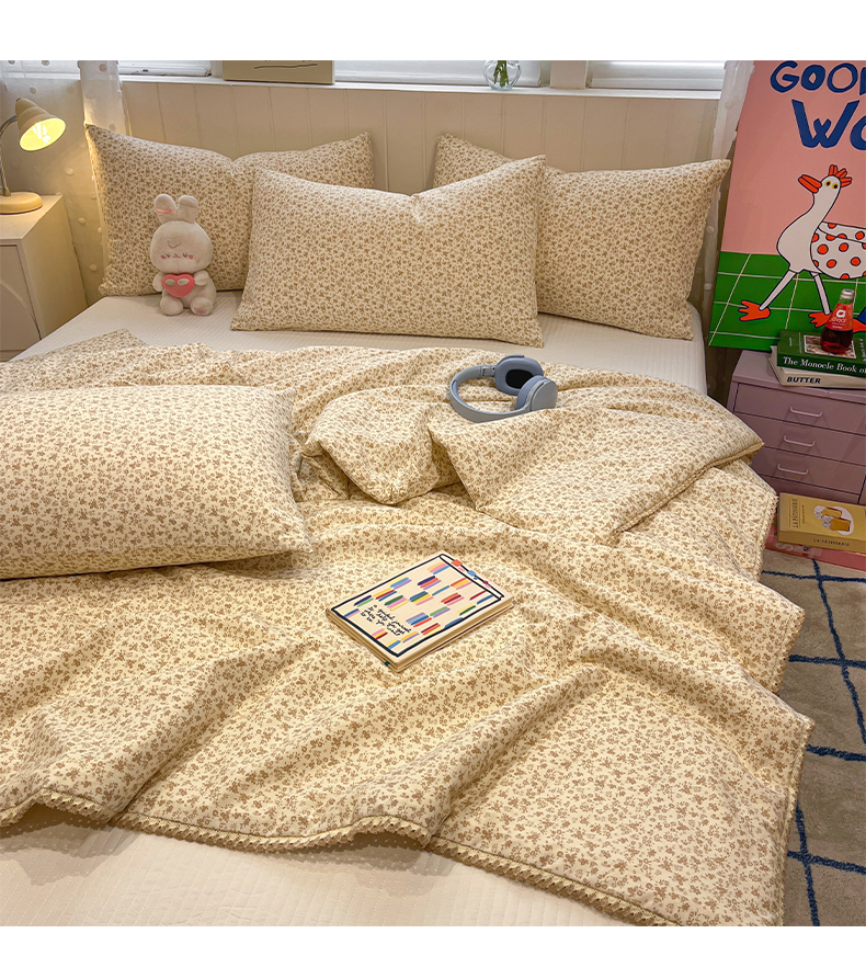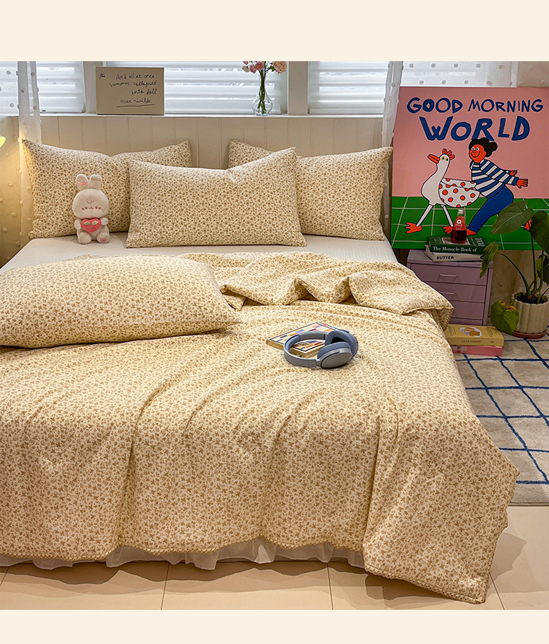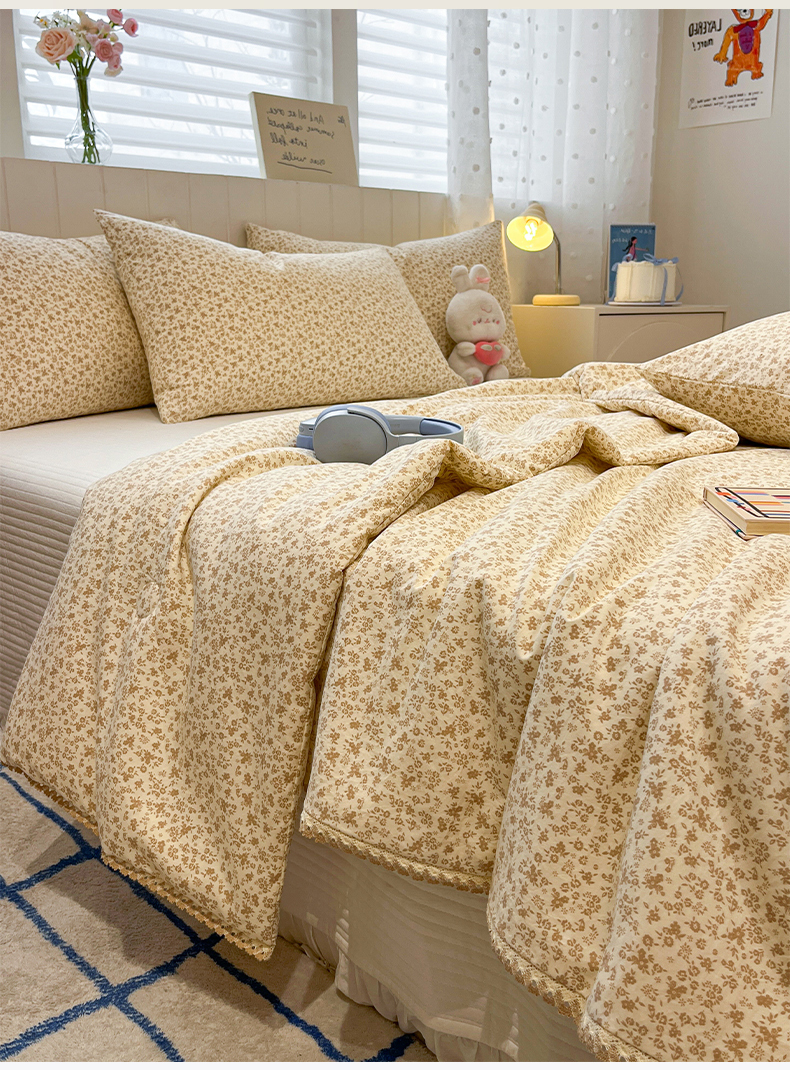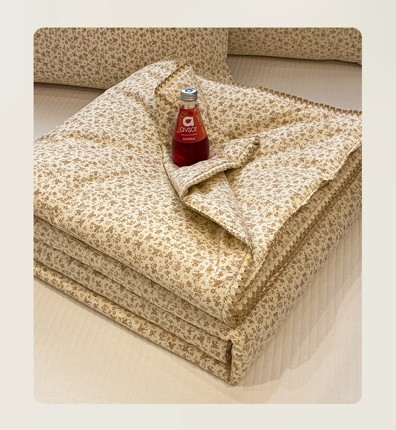 一加一 2026新款全棉小花边碎花大豆夏被-棉云花畔 杏芙