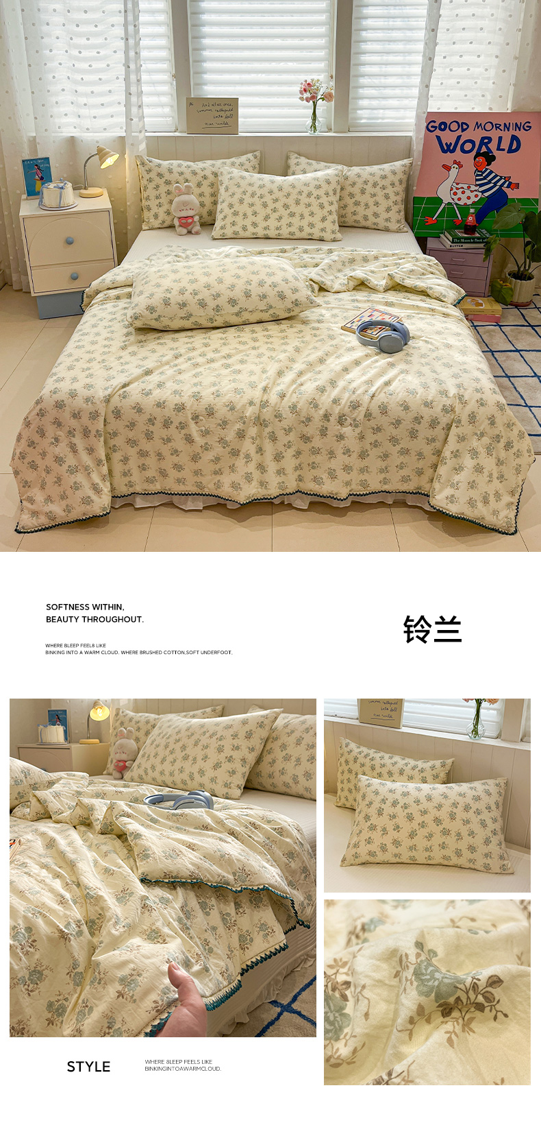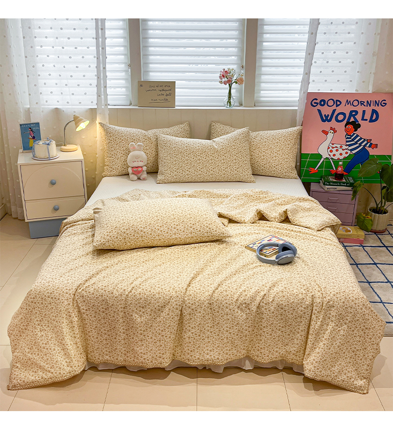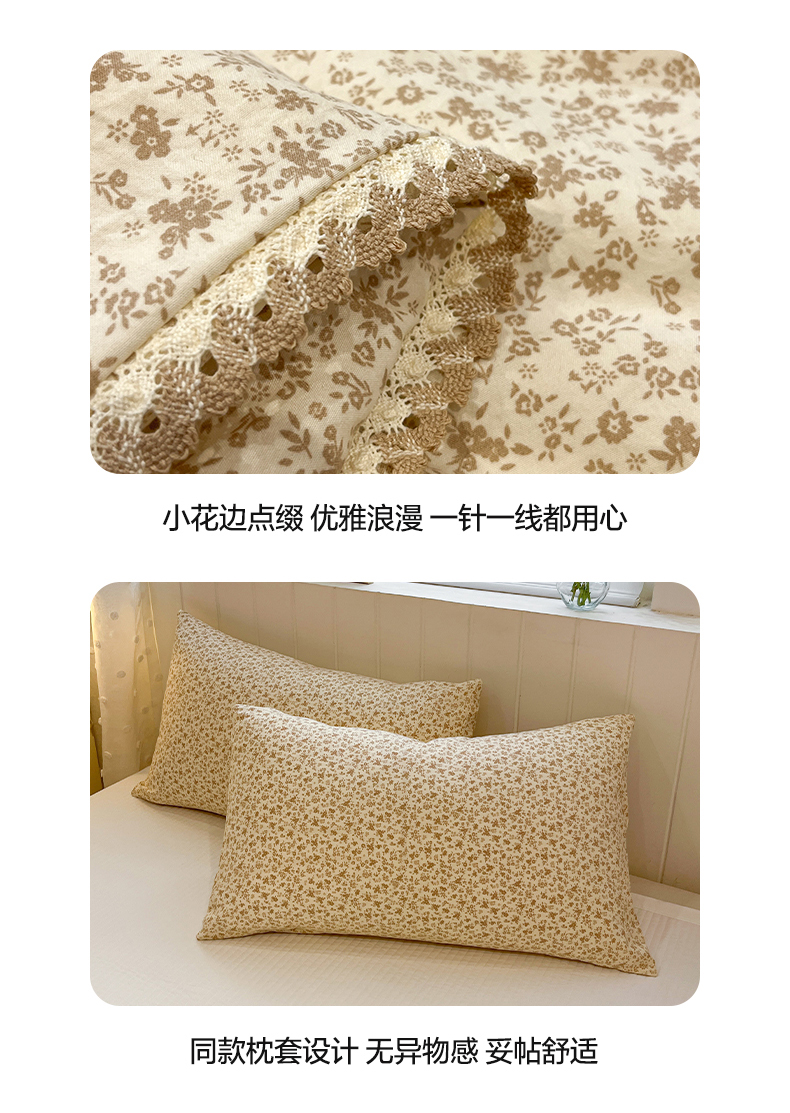 商品名称:一加一 2026新款全棉小花边碎花大豆夏被-棉云花畔 杏芙