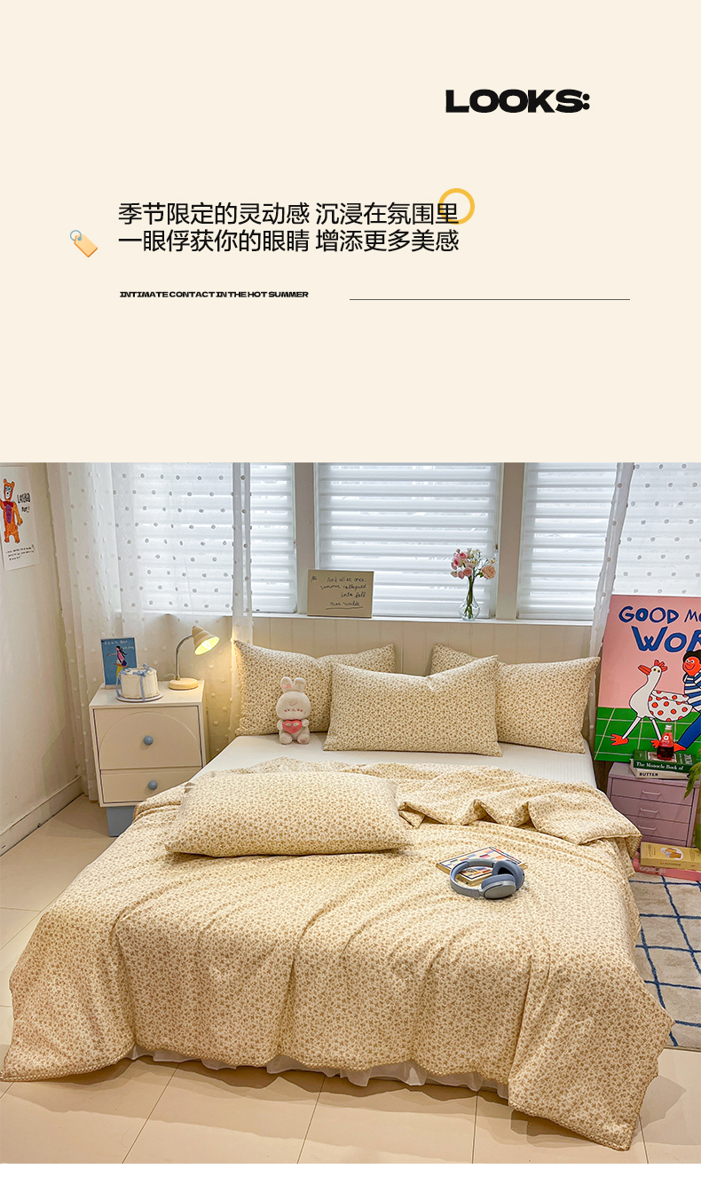 (总)一加一 2026新款洛卡棉印花大豆夏被四件套,白瓷花絮,彩色萝卜,彩色甜梦,粉紫花序,奶芙腊肠狗,南瓜兔派对,浅蓝甜梦,青禾随影,软心小狗,元气小果,紫樱奶芙