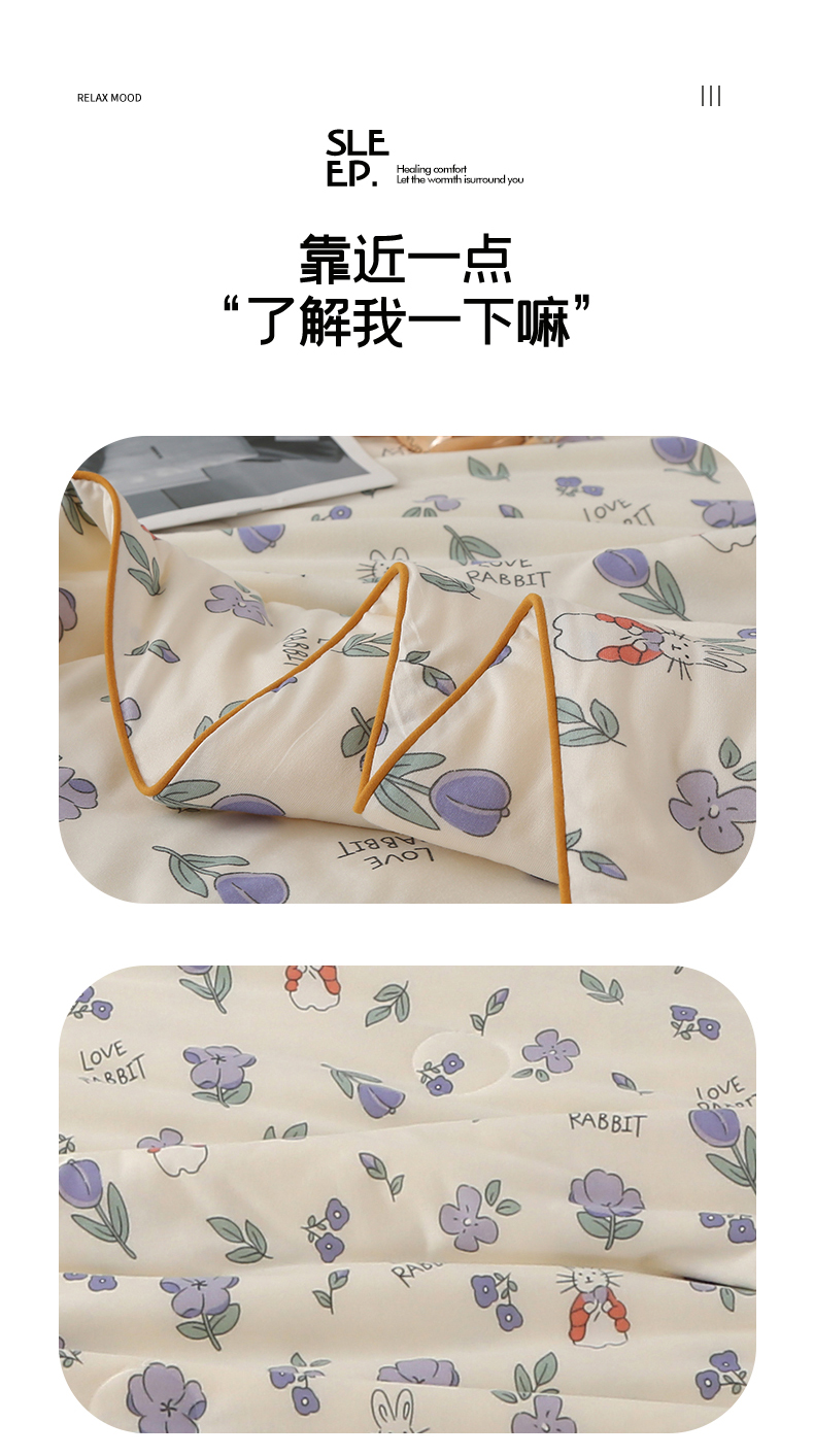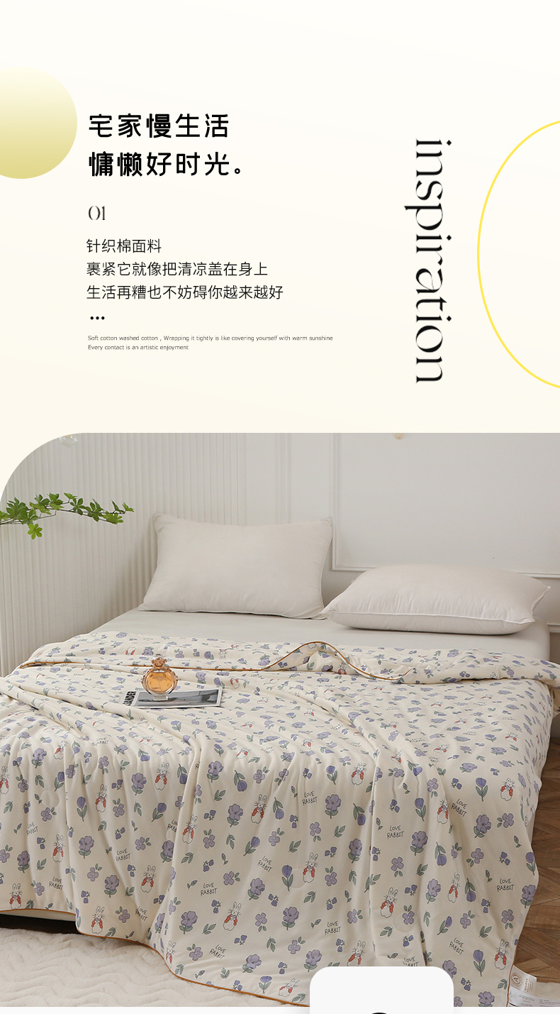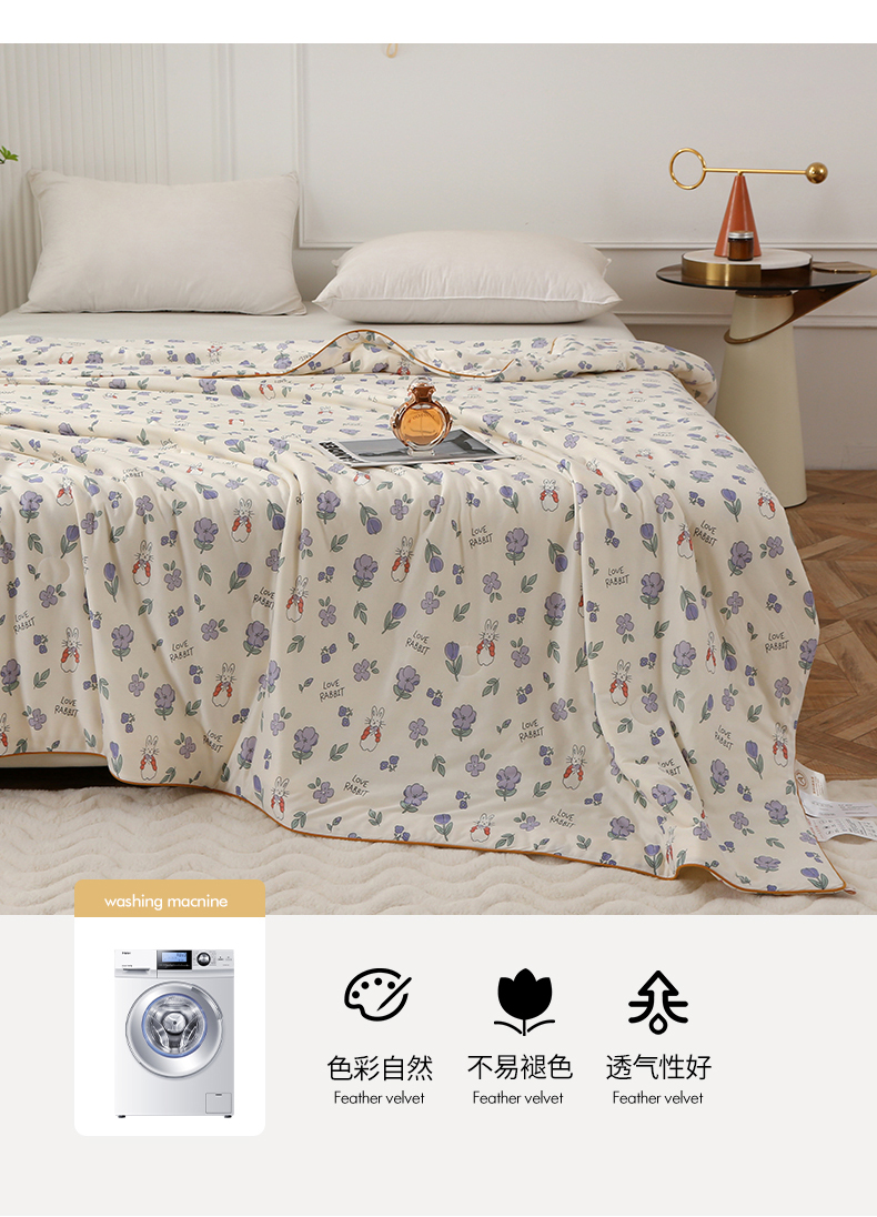 商品名称:薇玛仕 2026新款A类牛奶丝针织棉印花大豆夏凉被空调被儿童被 花间兔