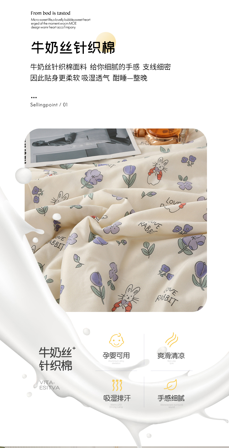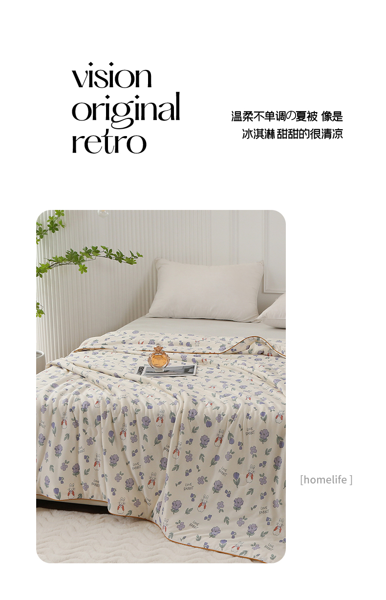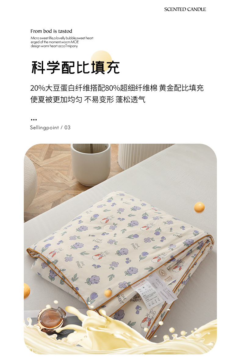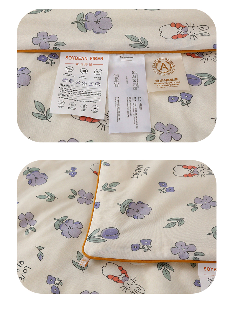 商品名称:薇玛仕 2026新款A类牛奶丝针织棉印花大豆夏凉被空调被儿童被 花间兔