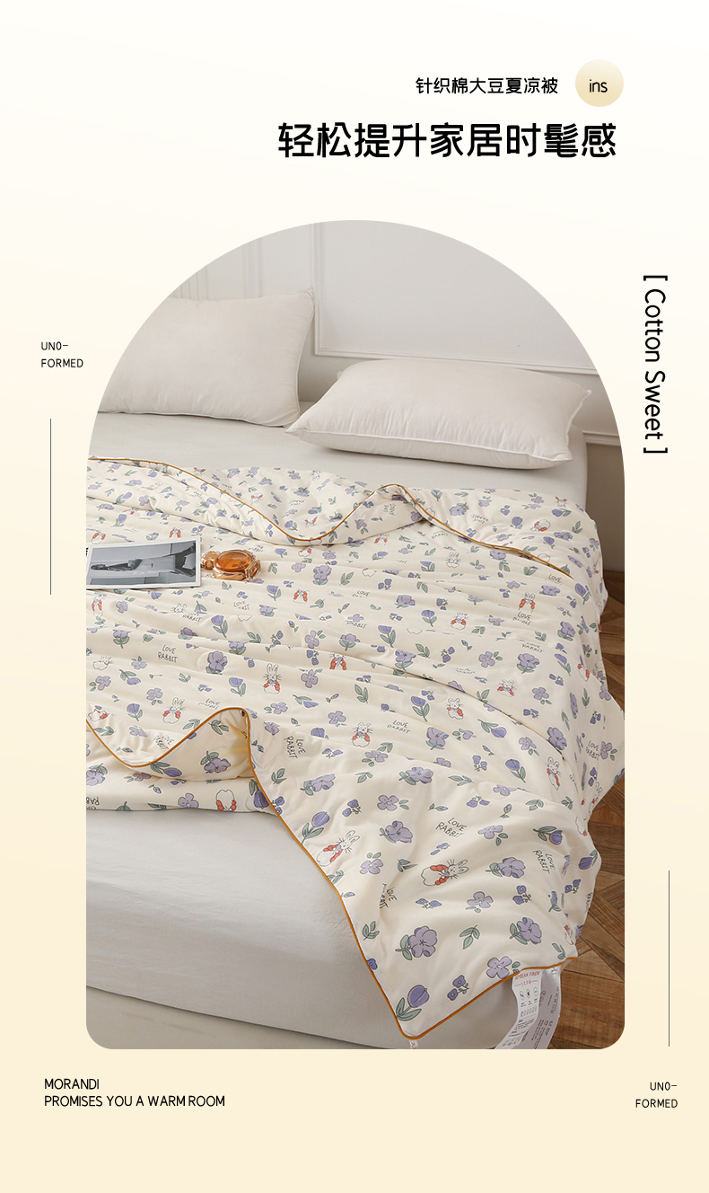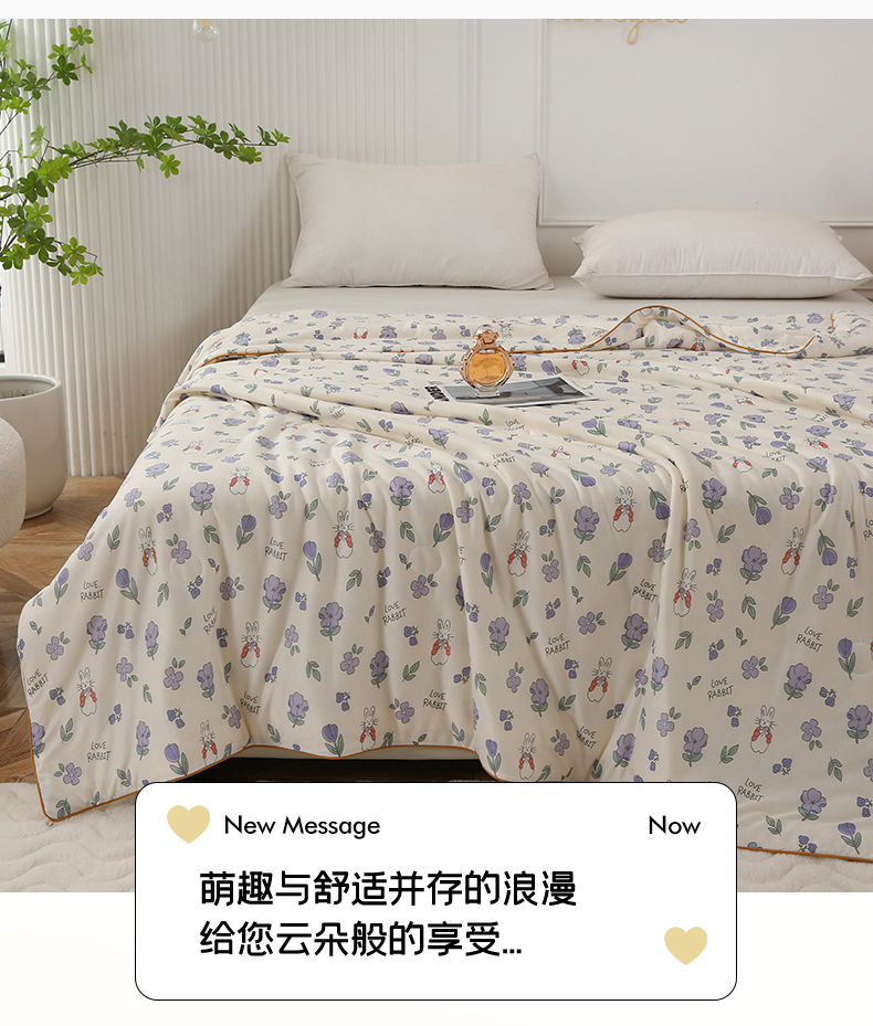 薇玛仕 2026新款A类牛奶丝针织棉印花大豆夏凉被空调被儿童被 花间兔