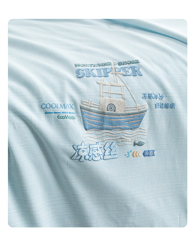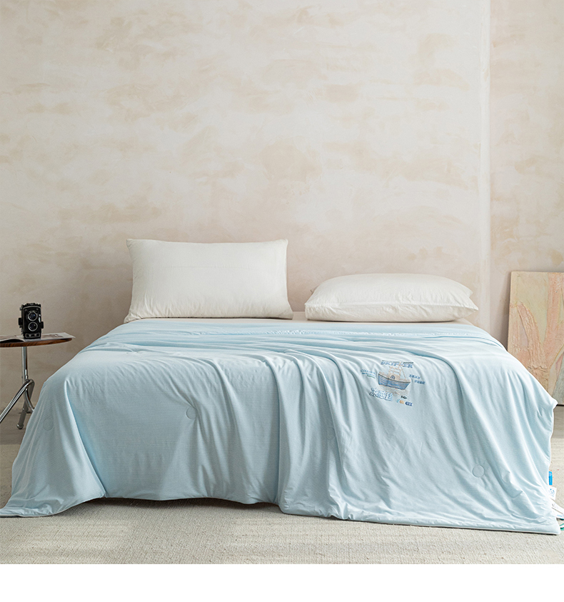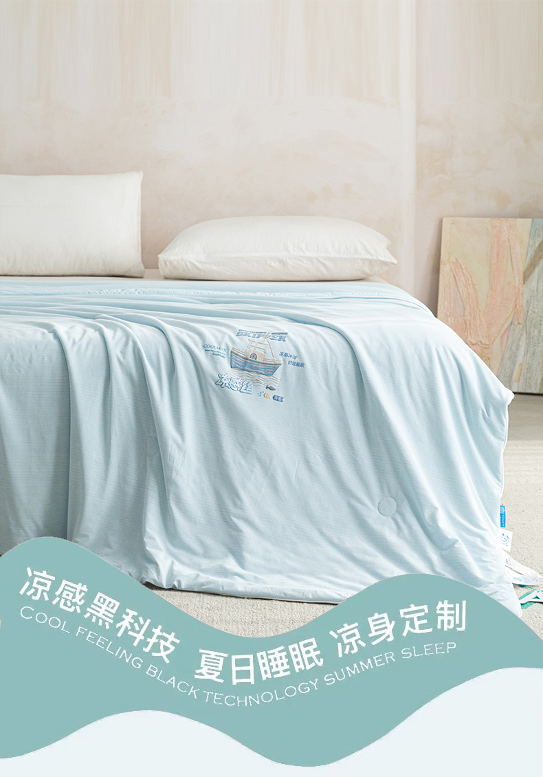 商品名称:亿莱鑫 2026春夏新款纯色高克重仿锦氨凉感夏被夏凉被空调被-扬帆起航 扬帆起航-蓝