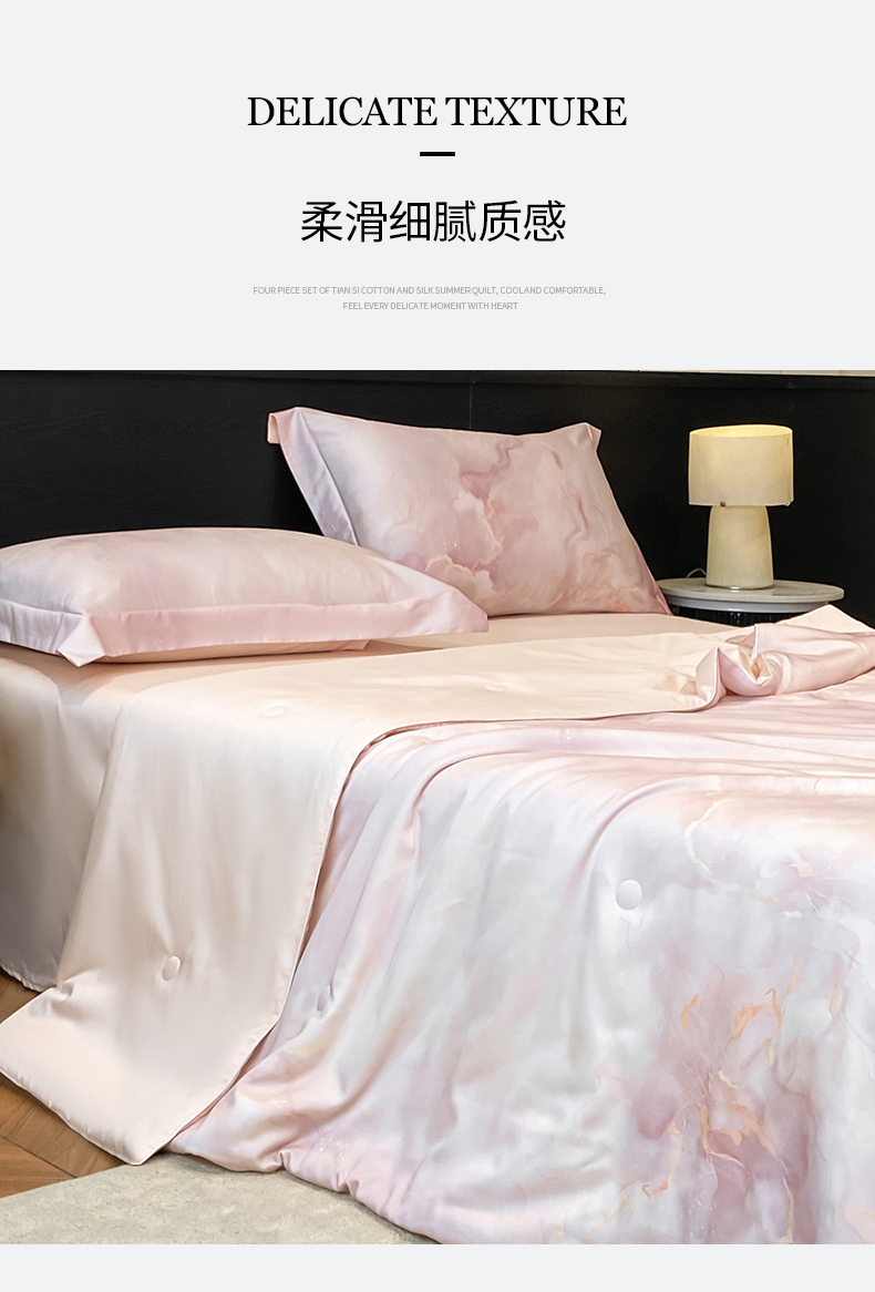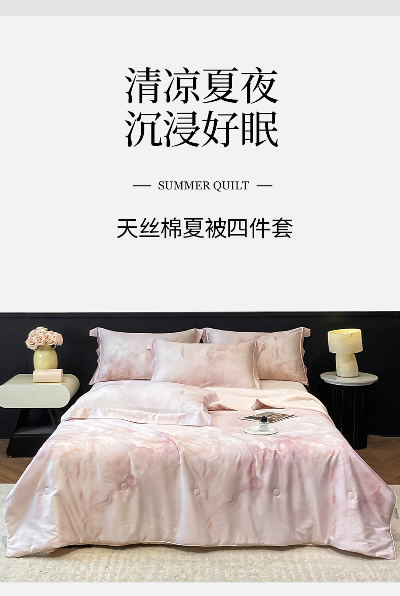 当前位置: 91家纺网 > 商品网购 > 床品套件 > 四件套 > 其它四件套 > (总)新方向 2026新款数码印花A类20%蚕丝天丝棉夏被四件套 65%60s兰精天丝 35%100支长绒棉-如愿