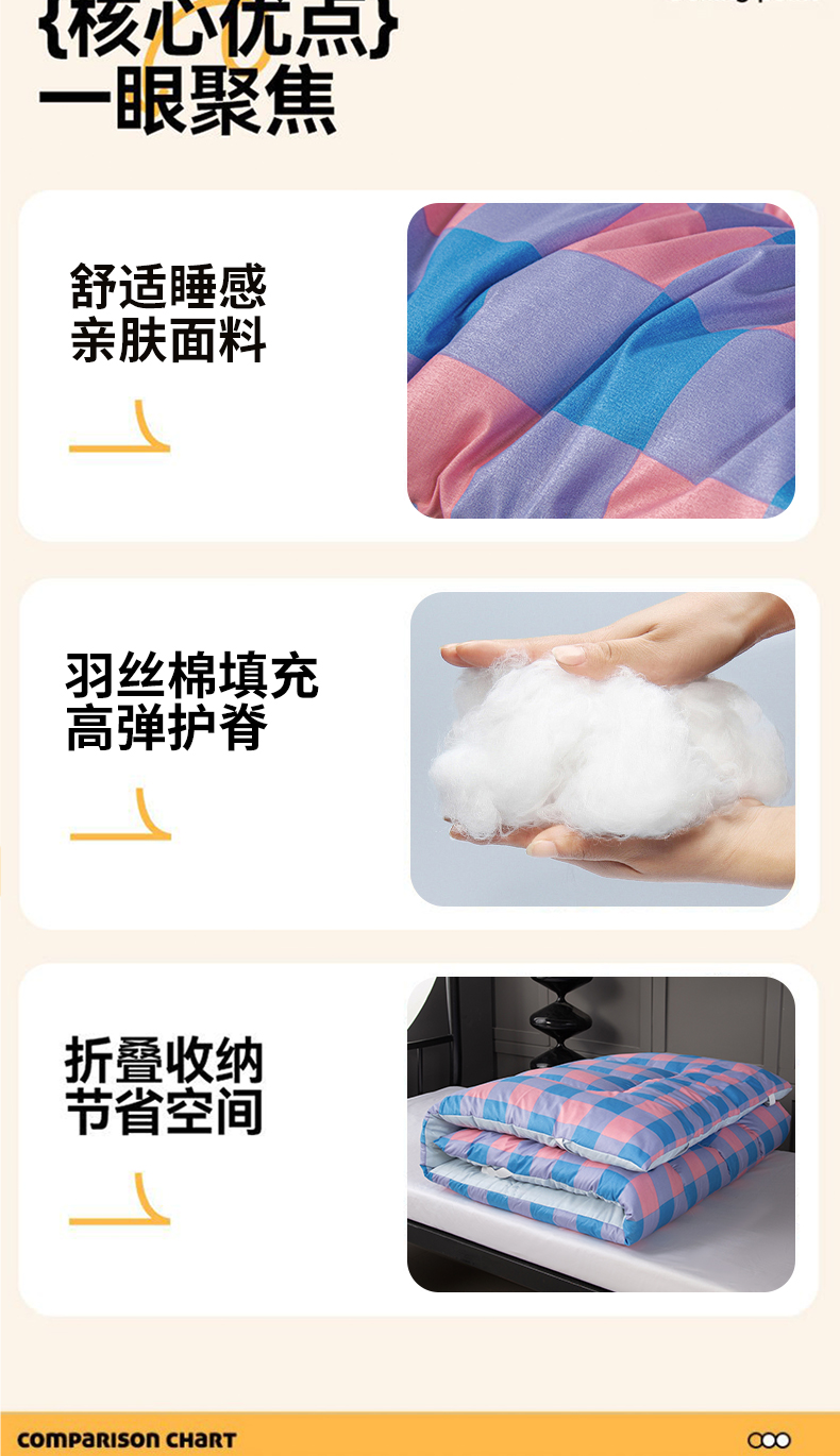 商品名称:友承家纺 A类木棉2026新款加厚床垫软垫褥子家用卧室租房专用学生宿舍单人垫被床褥垫榻榻米双人垫子 炫彩格
