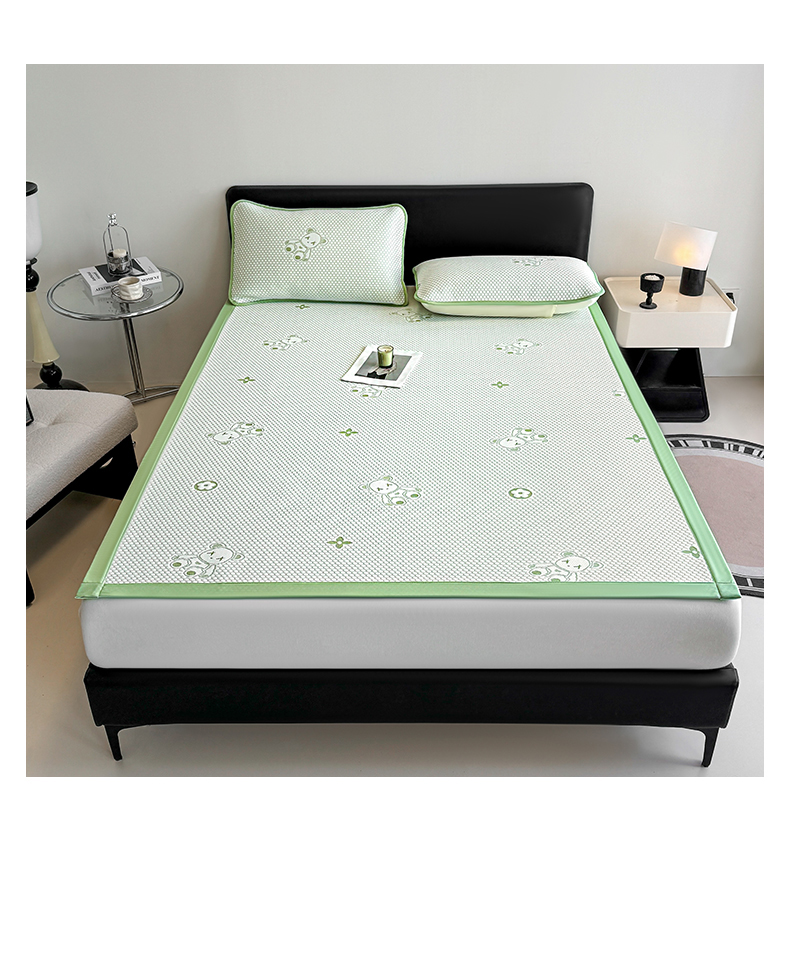 • 91家纺网 家纺一手货源 找家纺 家品罗兰 2026新款夏季A类冰豆豆凉席冰丝凉席家用双人冰丝席床单可机洗水洗单人学生宿舍夏天空调软席三件套大床 抱抱熊-绿