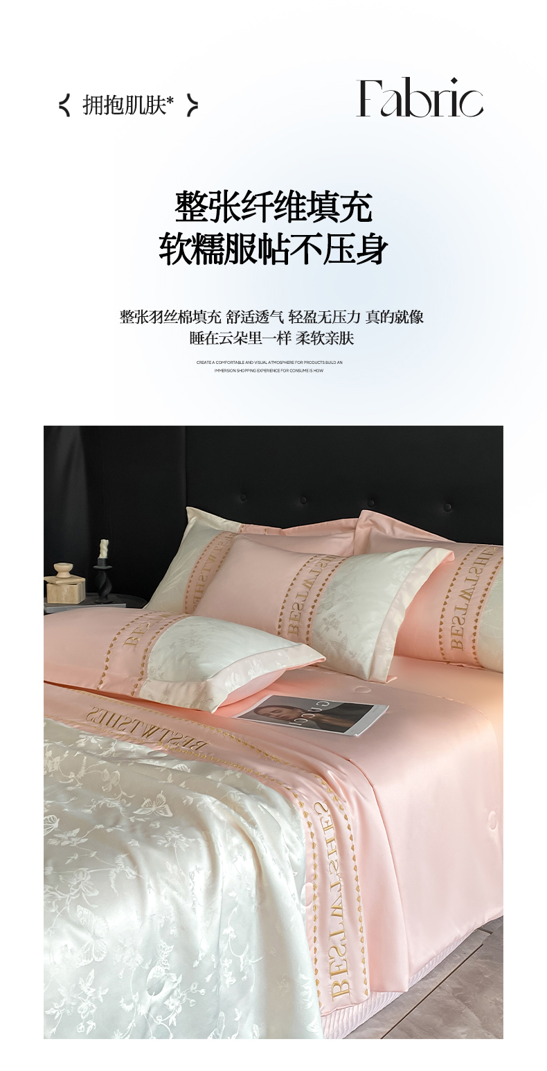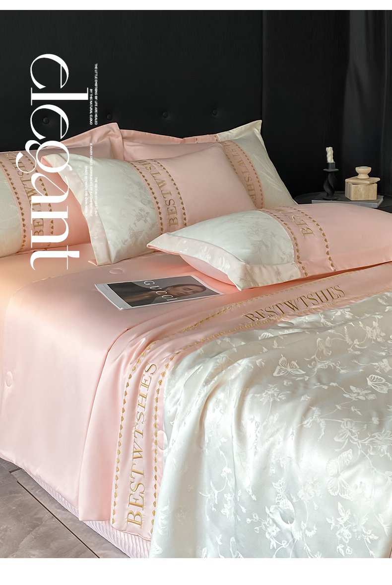 绘萱家居 2026爆款莱赛冰丝绣花拼接提花水洗天丝夏被四件套水洗真丝夏被夏凉被空调被 蝶舞纷飞-粉