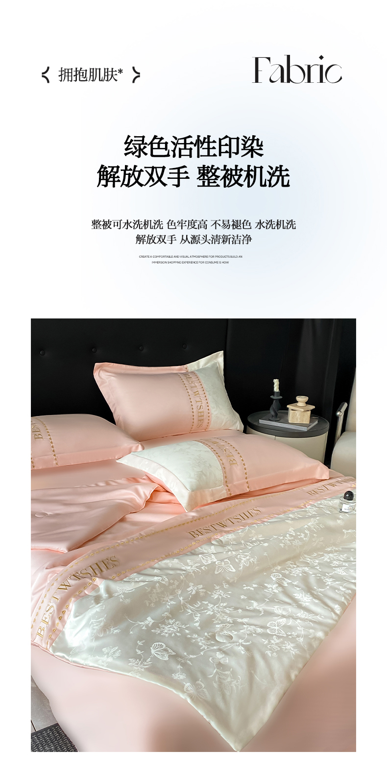 商品名称:绘萱家居 2026爆款莱赛冰丝绣花拼接提花水洗天丝夏被四件套水洗真丝夏被夏凉被空调被 蝶舞纷飞-粉