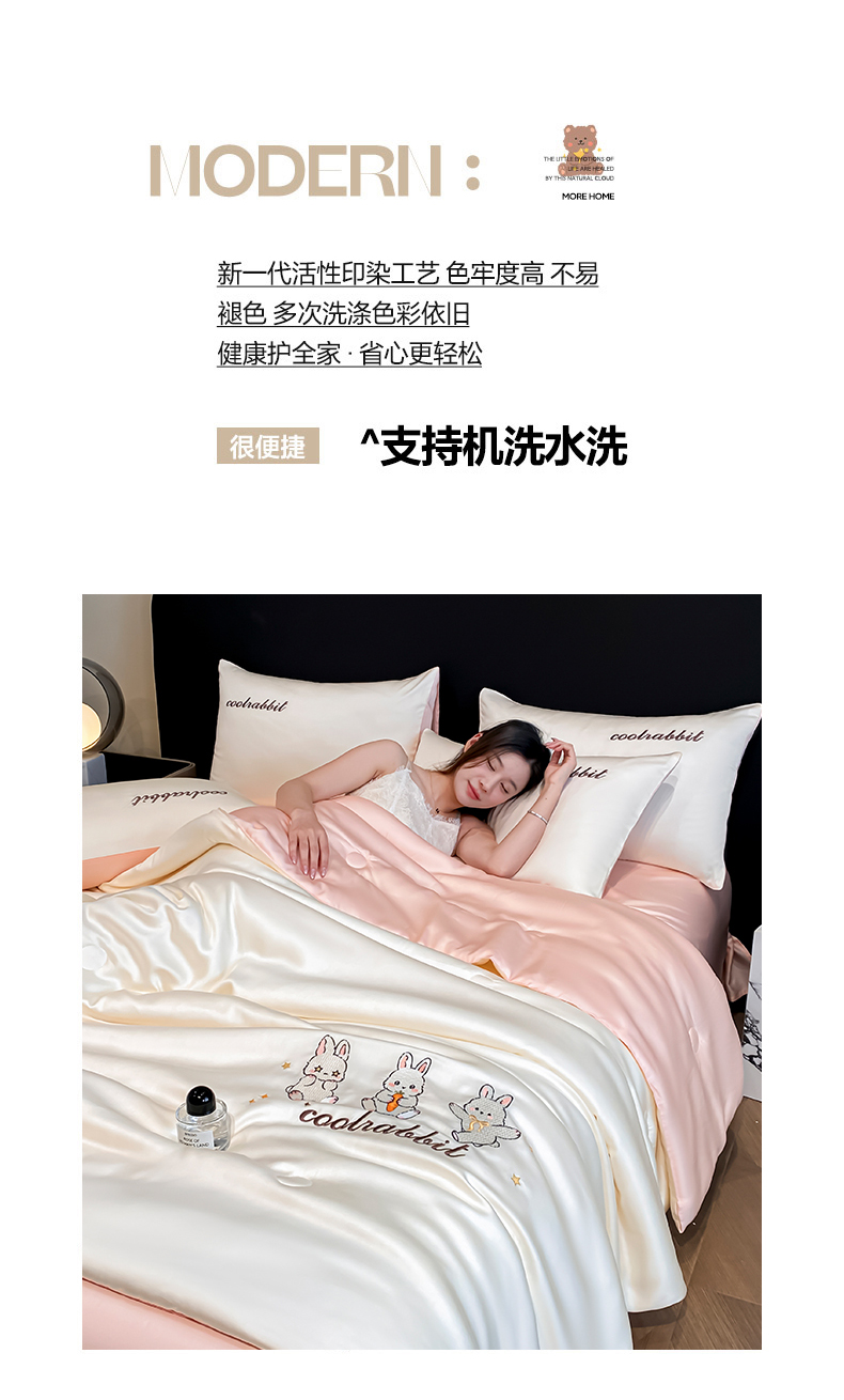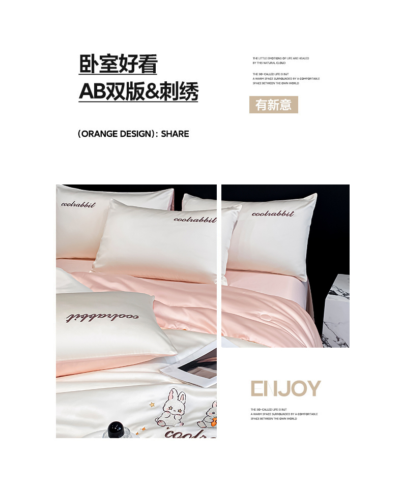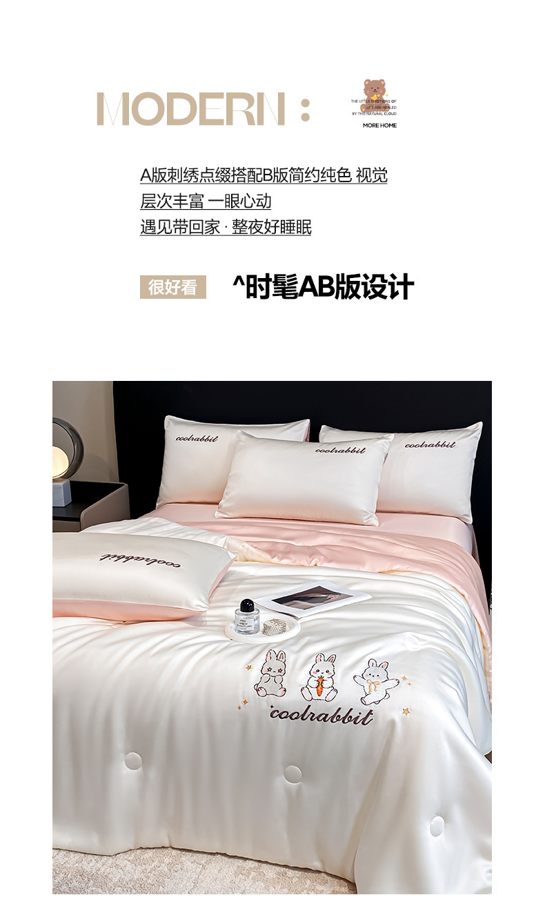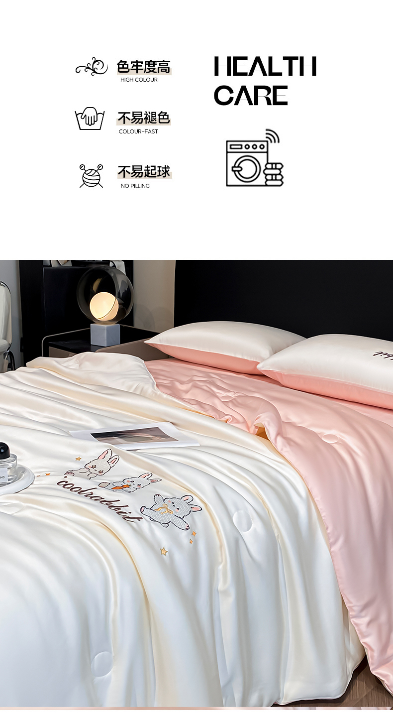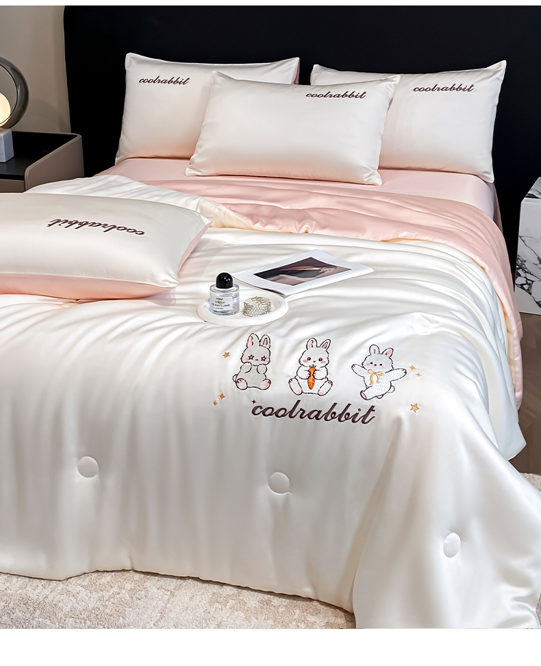 当前位置: 91家纺网 > 商品网购 > 床品套件 > 四件套 > 全棉普通四件套 > 云棉坊 2026新款水洗真丝冰丝刺绣夏被四件套-卡通款 乖乖兔-奶白+蜜桃