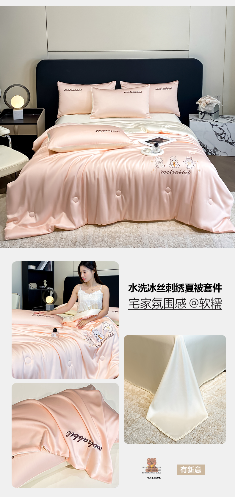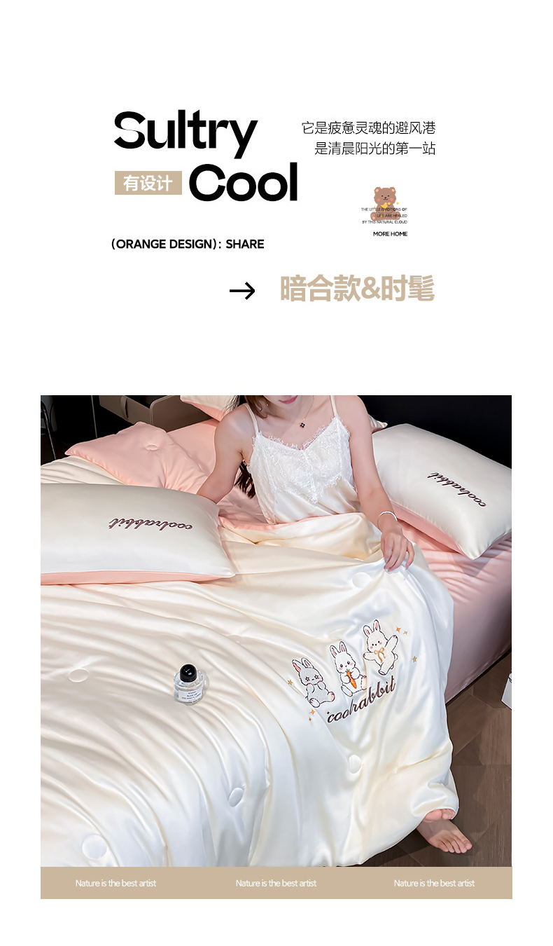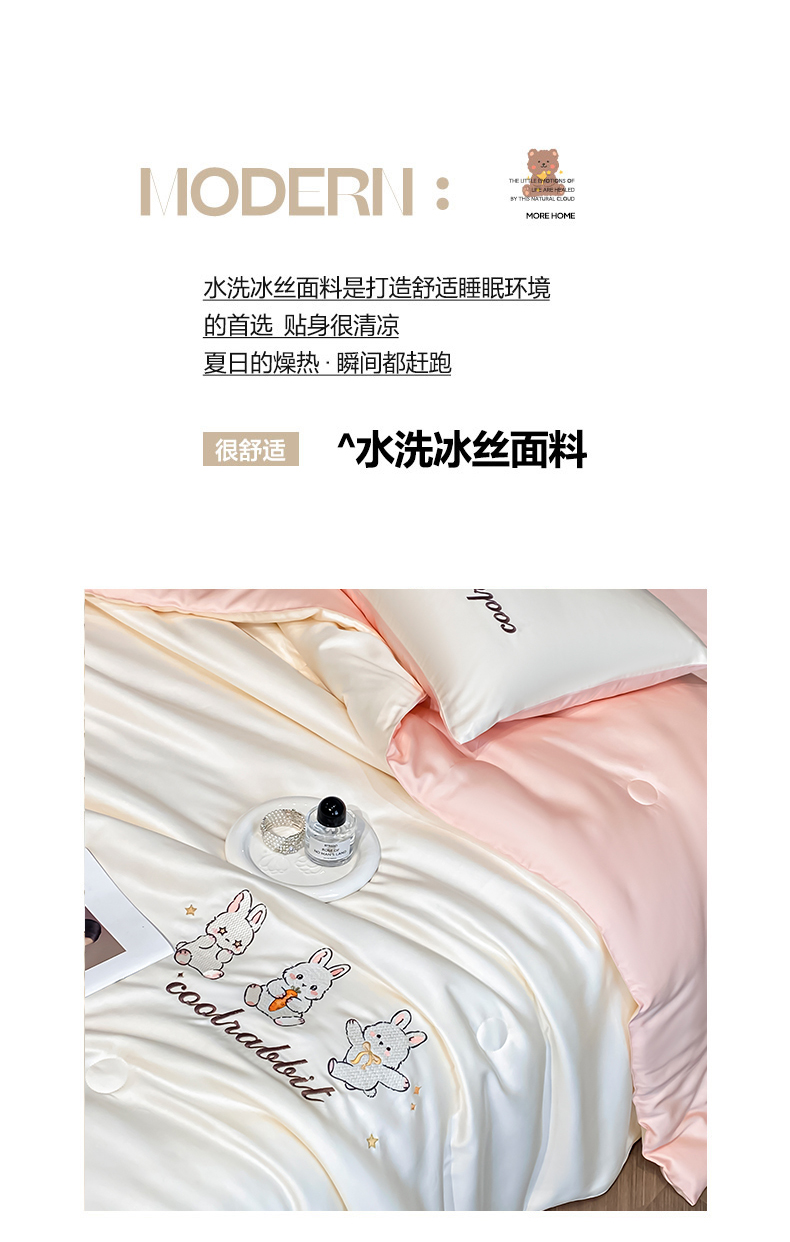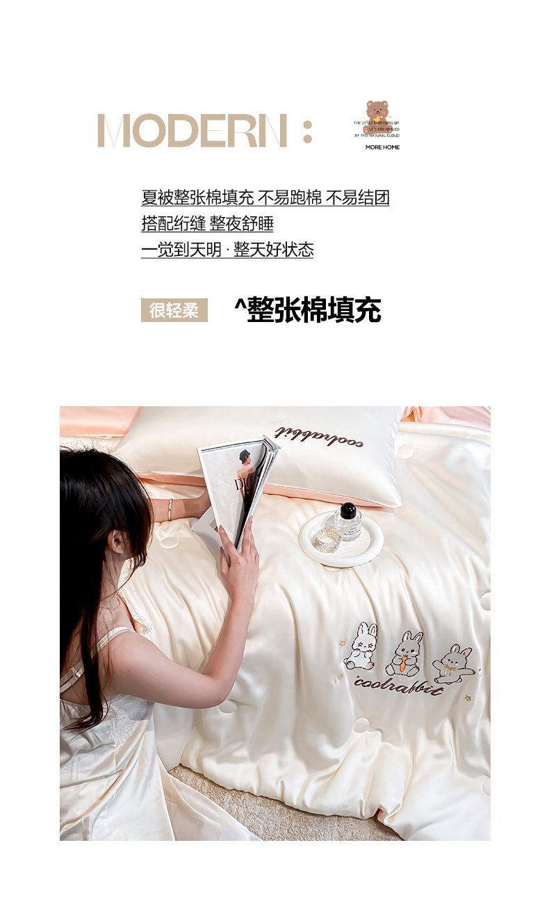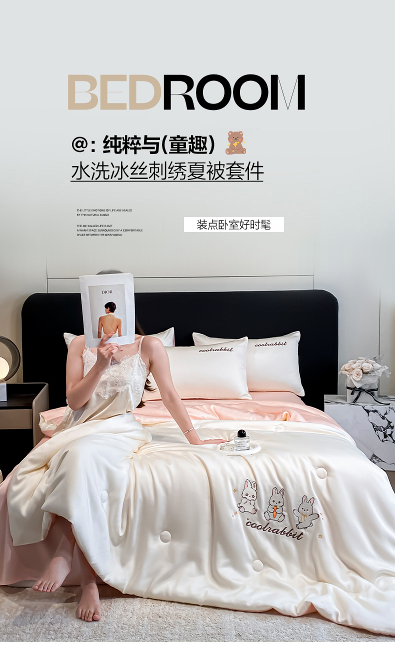 当前位置: 91家纺网 > 商品网购 > 床品套件 > 四件套 > 全棉普通四件套 > 云棉坊 2026新款水洗真丝冰丝刺绣夏被四件套-卡通款 乖乖兔-奶白+蜜桃