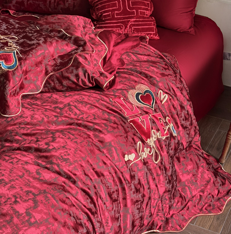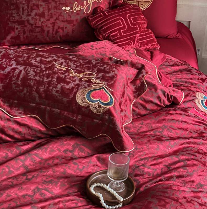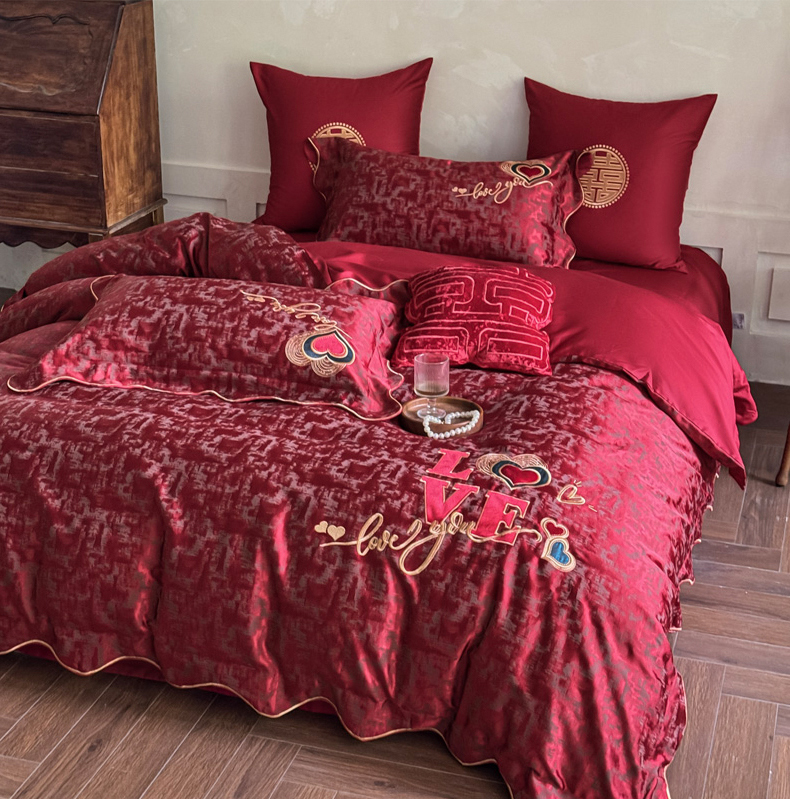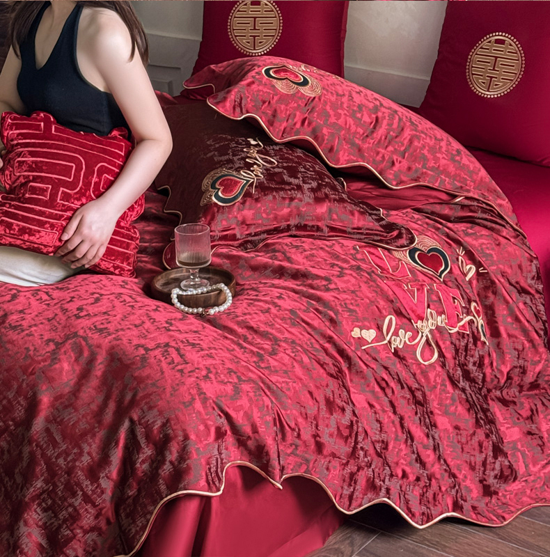 甜咪咪婚庆 2026春夏新款大提花婚庆结婚四件套多件套床单床笠款 红妆