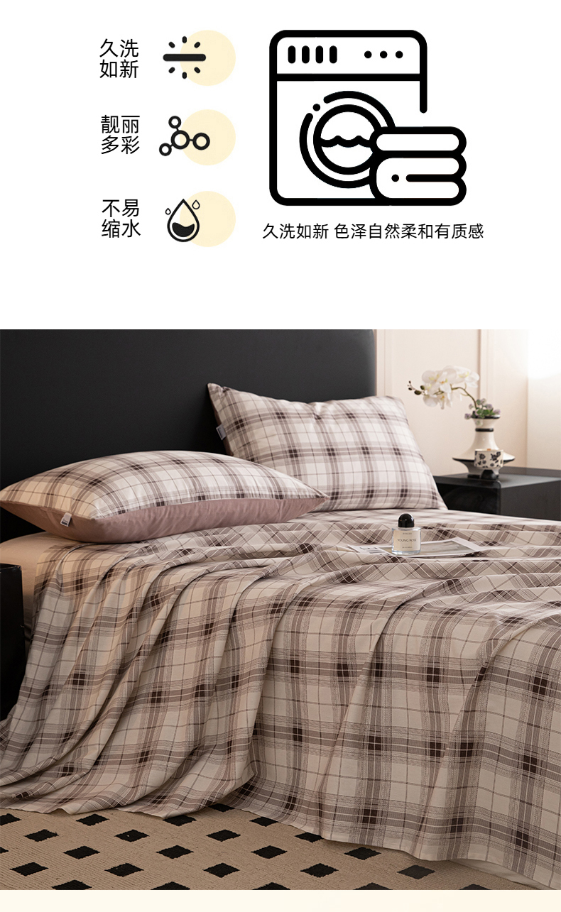 商品名称:女子家纺 2026新款40支13070全棉纯棉简约格子A版单床单床单单件 英伦-棕咖