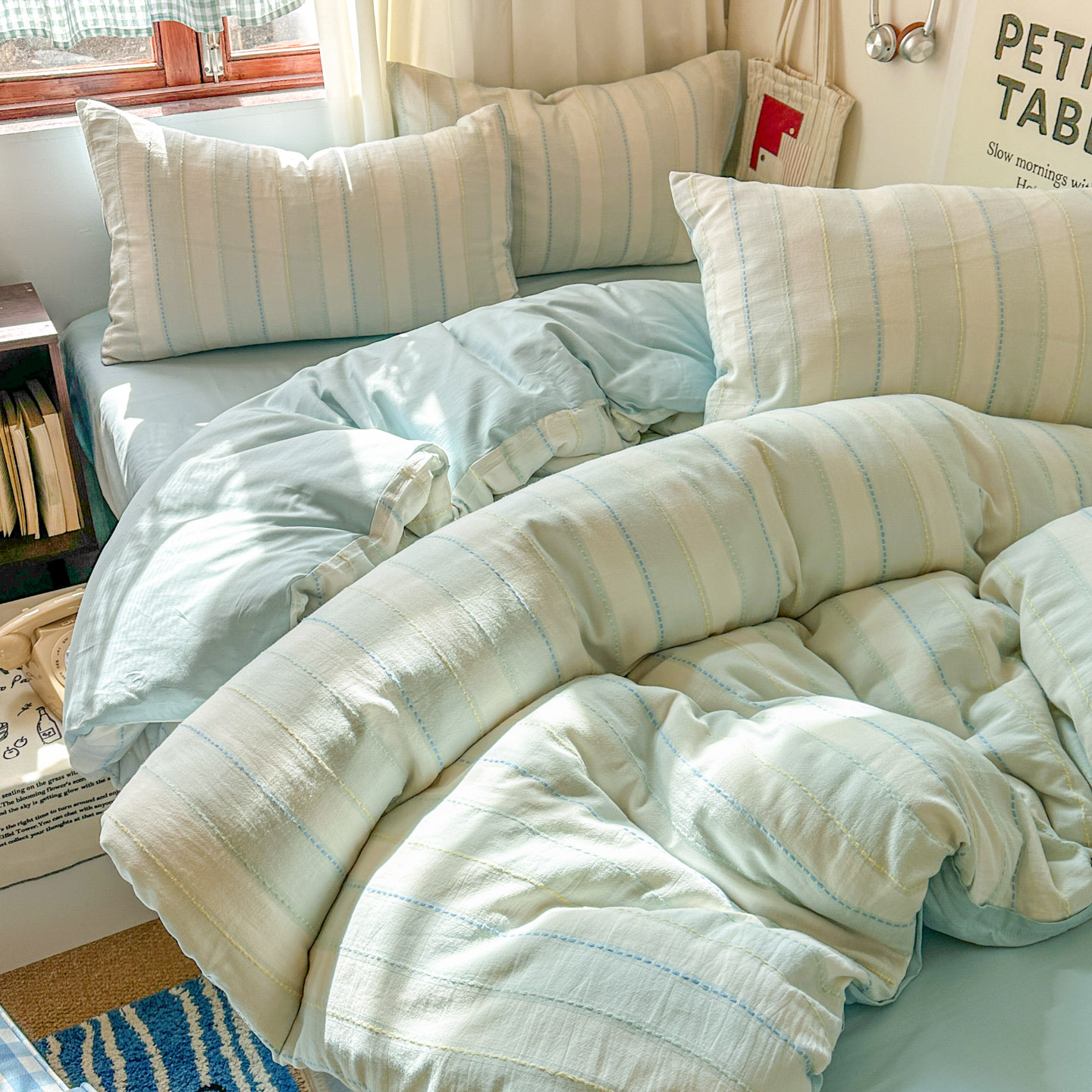 (总)田野 2026新款全棉棉麻四件套-条纹系列,禾风 粉绿,禾风 卡其,禾风 兰灰,禾风 米驼,禾风 紫条