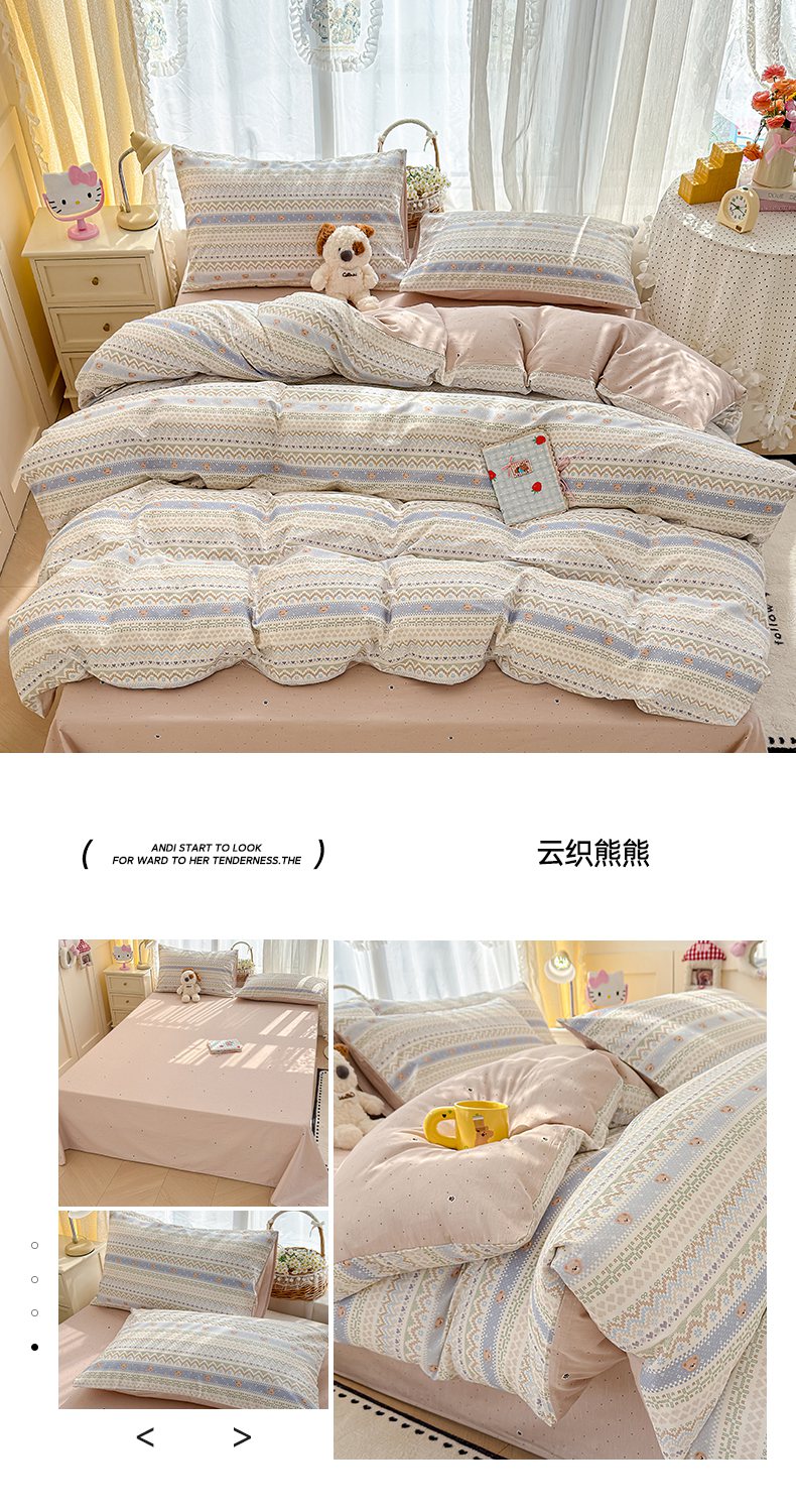 (总)铺尚美家纺 2026新款A类古法水洗仿棉云感纱四件套,萌兔小熊,安娜,波点熊,布丁狗,草莓啵啵,草莓熊-粉,草莓熊-蓝,丁香紫,格纹萌友团,格子熊,狗狗乐园,乖乖狗-灰,乖乖狗-玉,花园小猫,猫狗狂欢夜,玫瑰庄园,莫兰迪,奶绿牛油果,蔷薇花语,条纹小熊,小马星河,小奶团,星芒啵啵熊,雪花世界,英伦小木马,紫罗兰