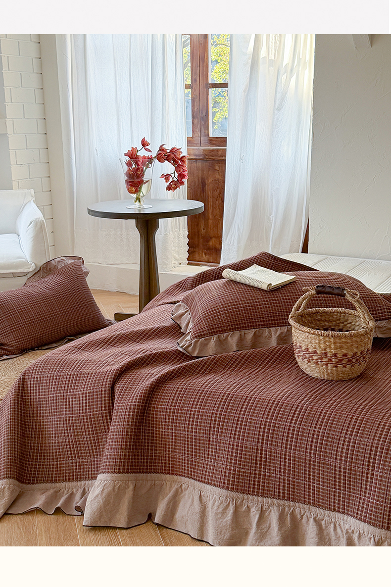 (总)欣宜家纺 2026新款全棉色织水洗棉床盖三件套,奥利奥格,海盐细格,焦糖拿铁,墨禾绿格,南法棕格,雾蓝格,新年红格,英伦格纹,芝士奶格,组合图仅供展示-不可下单