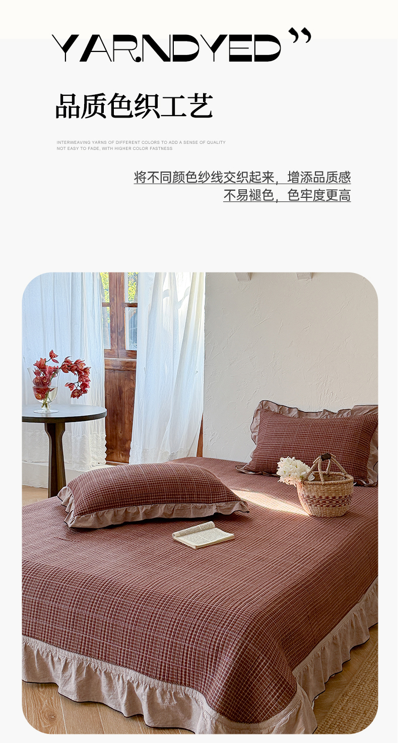 欣宜家纺 2026新款全棉色织水洗棉床盖三件套 焦糖拿铁
