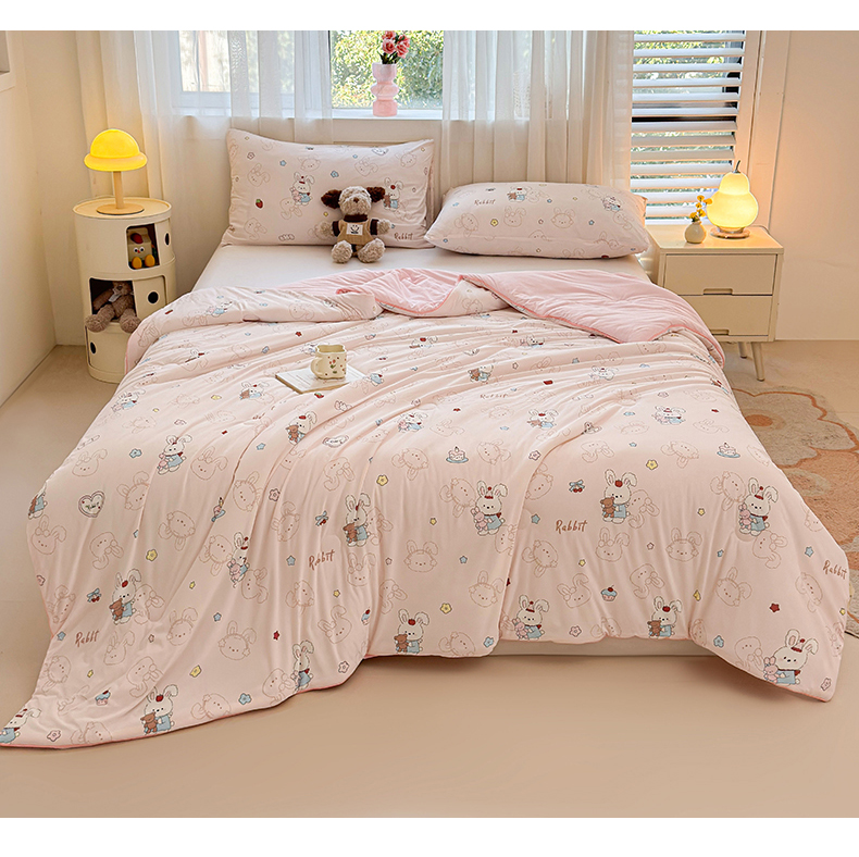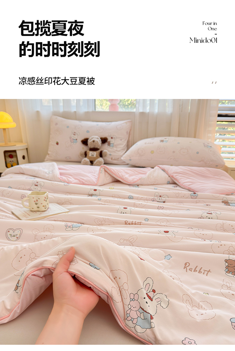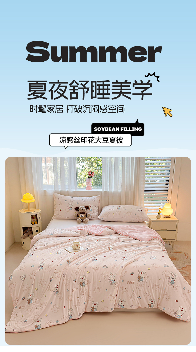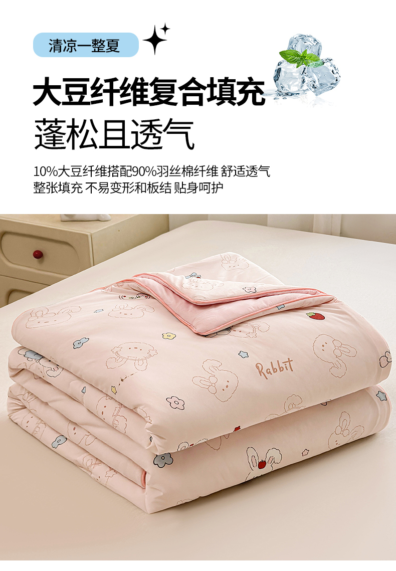 商品名称:景眠 2026新款凉感丝印花仿锦氨大豆夏被夏凉被空调被 樱桃兔