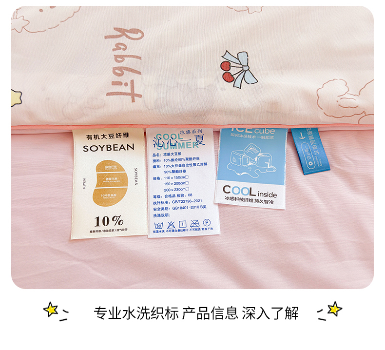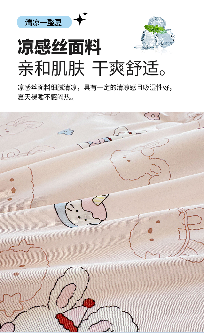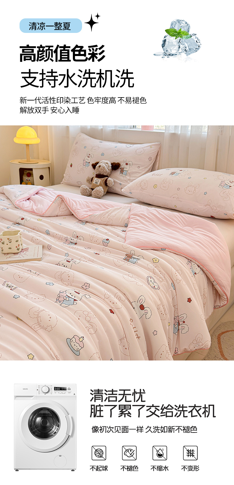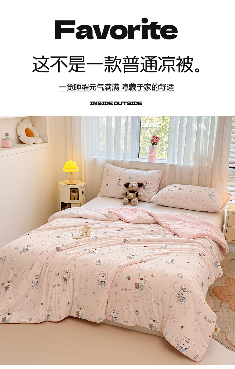 商品名称:景眠 2026新款凉感丝印花仿锦氨大豆夏被夏凉被空调被 樱桃兔