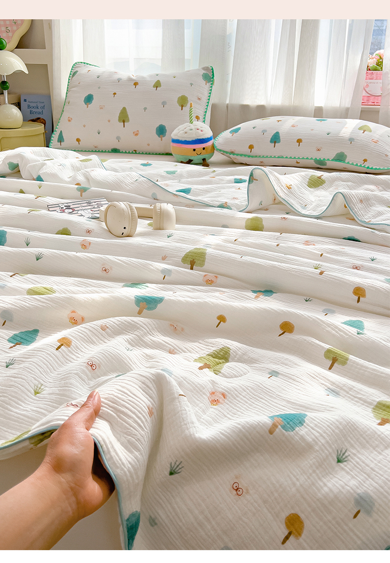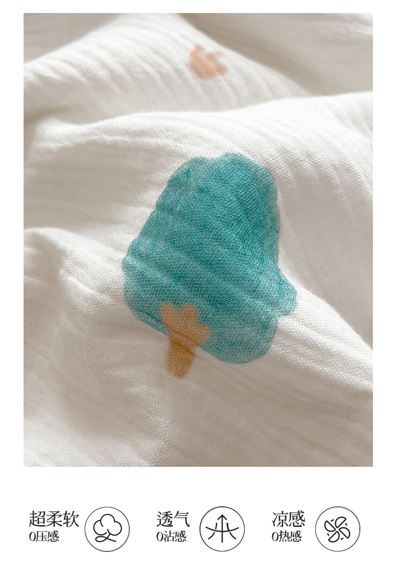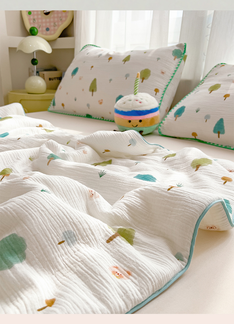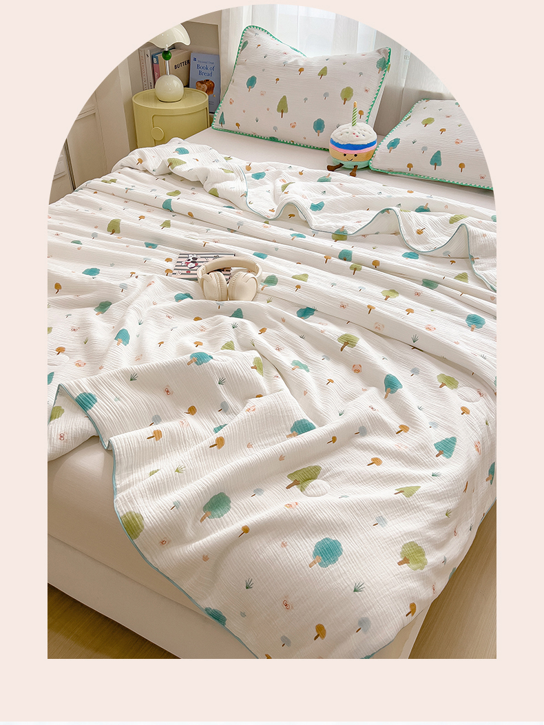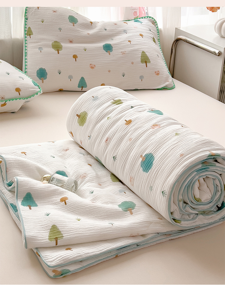 商品名称:兄弟坊 2026春夏新款全棉纯棉印花双层皱皱纱(滚边款)夏被纱布夏凉被午睡被盖毯夏凉被 青芽夏