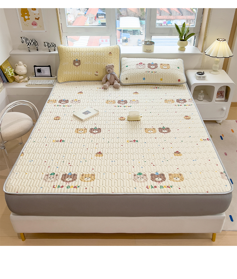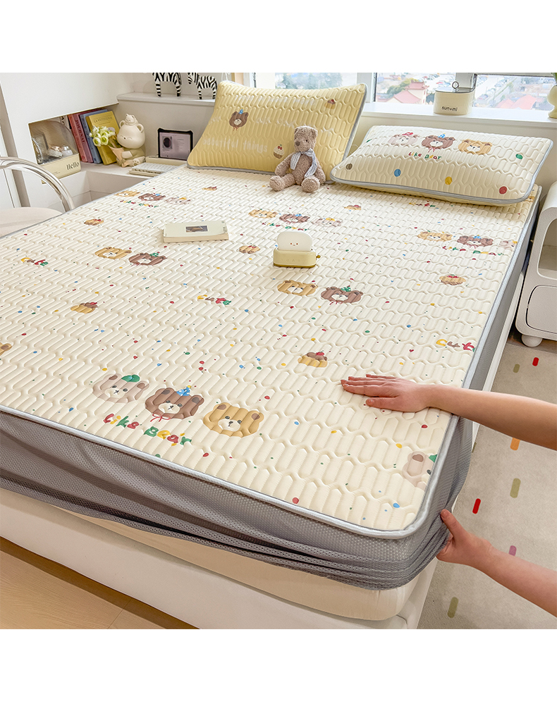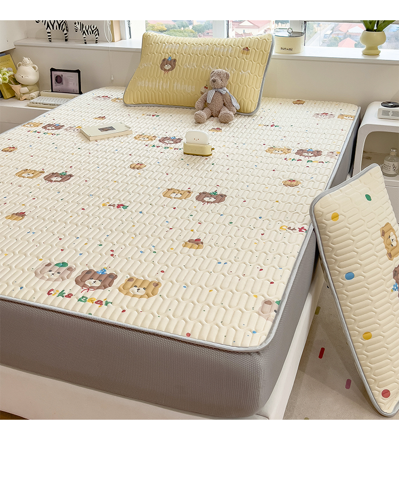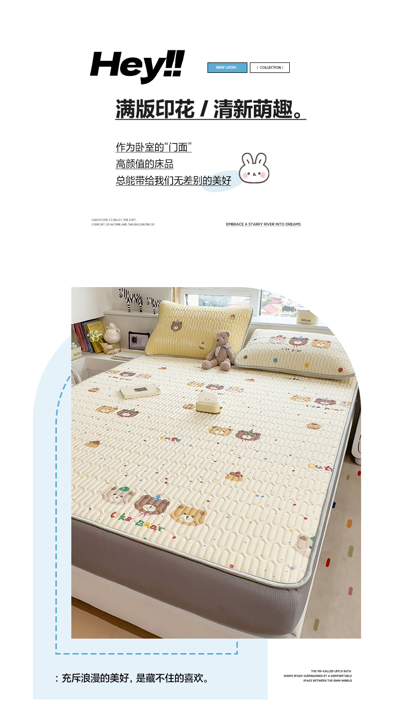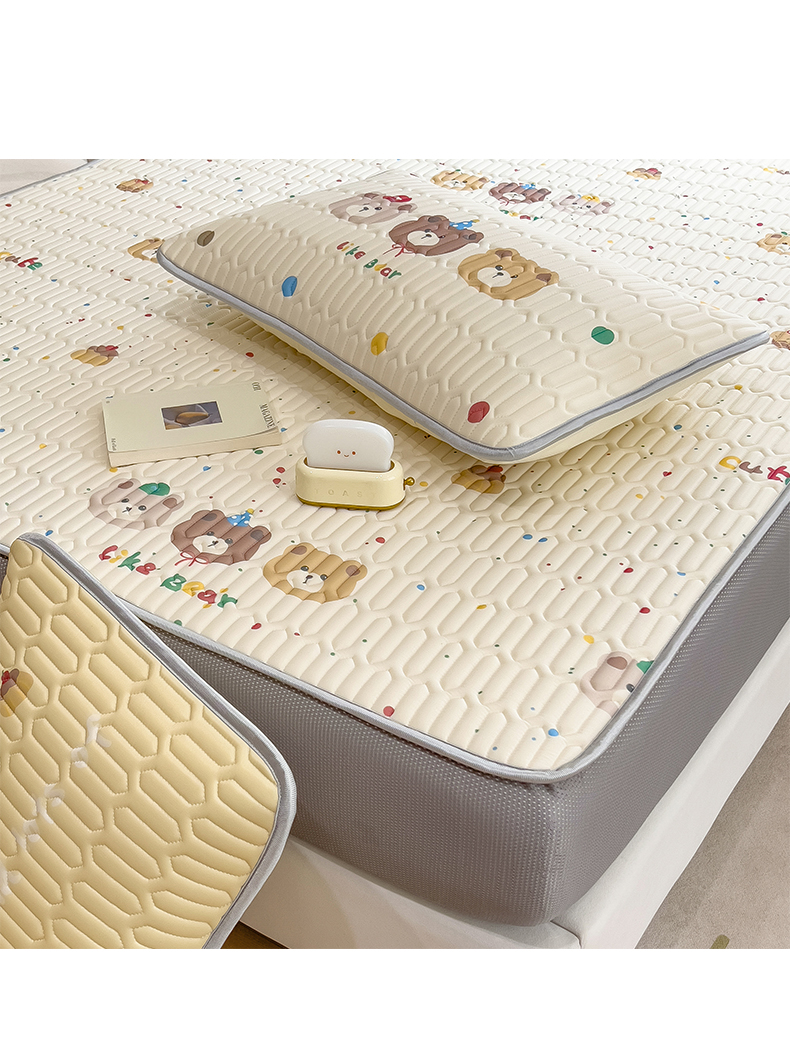 商品名称:摩妮卡 2026春夏新款凉感丝印花小清新乳胶凉席席子床笠款三件套 小熊童趣集