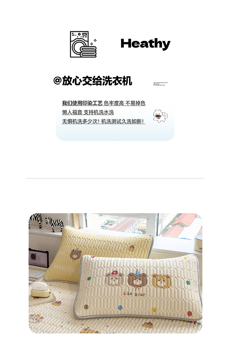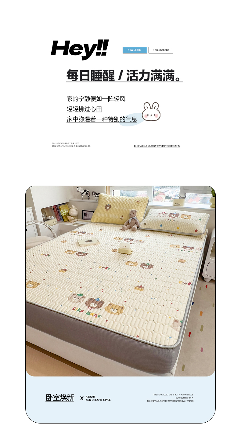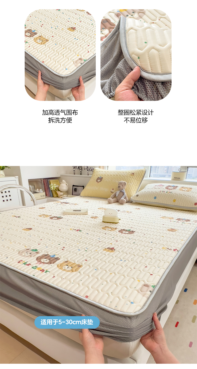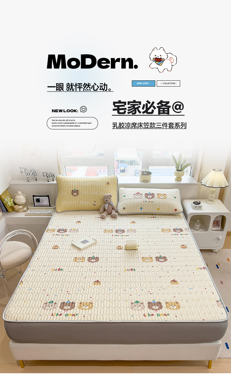 商品名称:摩妮卡 2026春夏新款凉感丝印花小清新乳胶凉席席子床笠款三件套 小熊童趣集