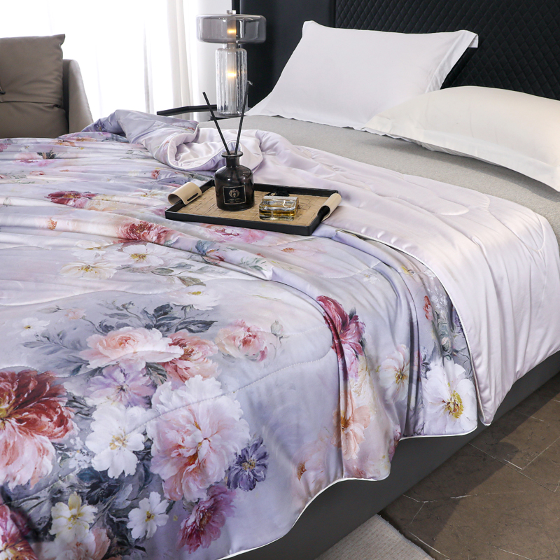 商品名称:天之悦家纺 2026新款夏被油光丝数码印花锦氨凉感被夏凉被空调被 晨露郁金