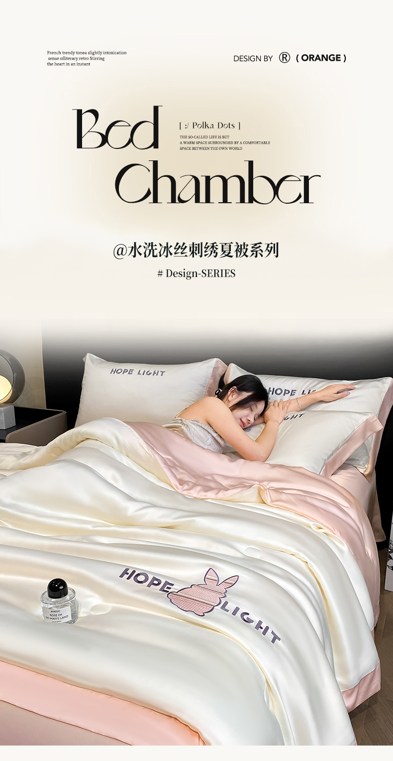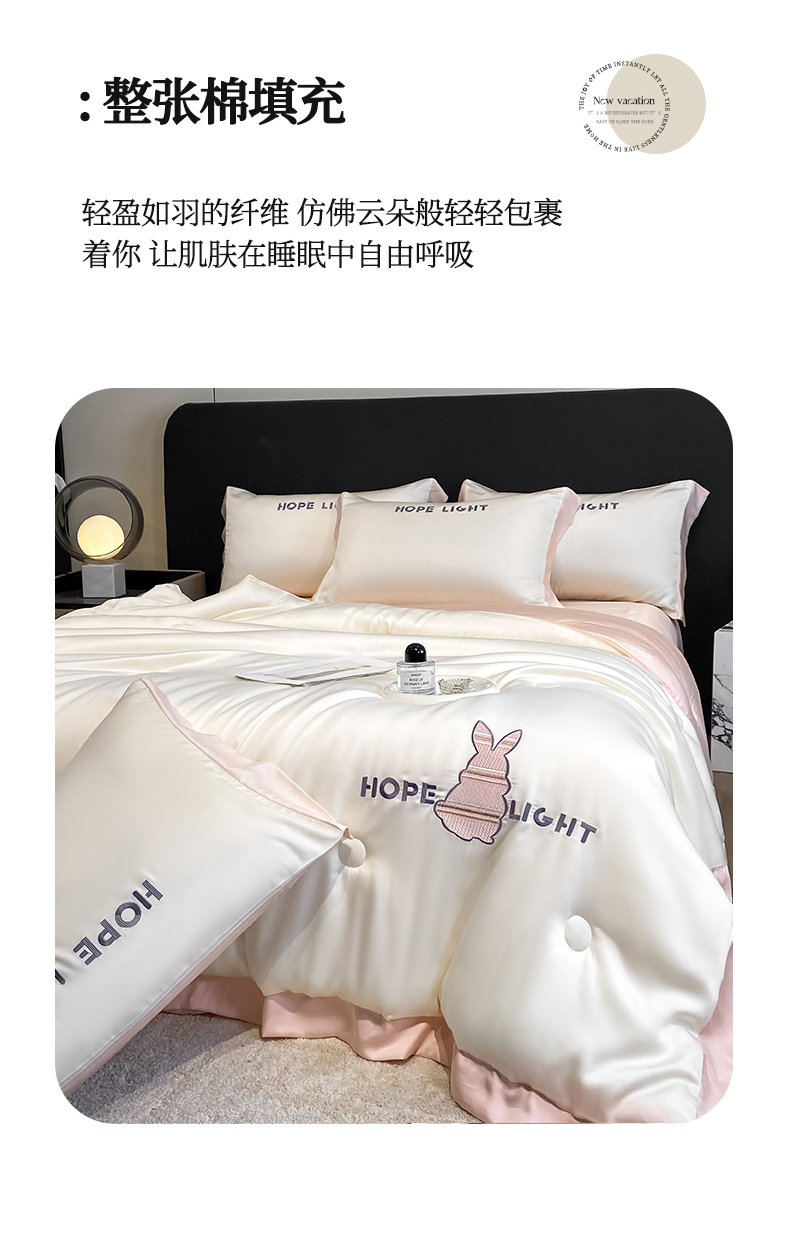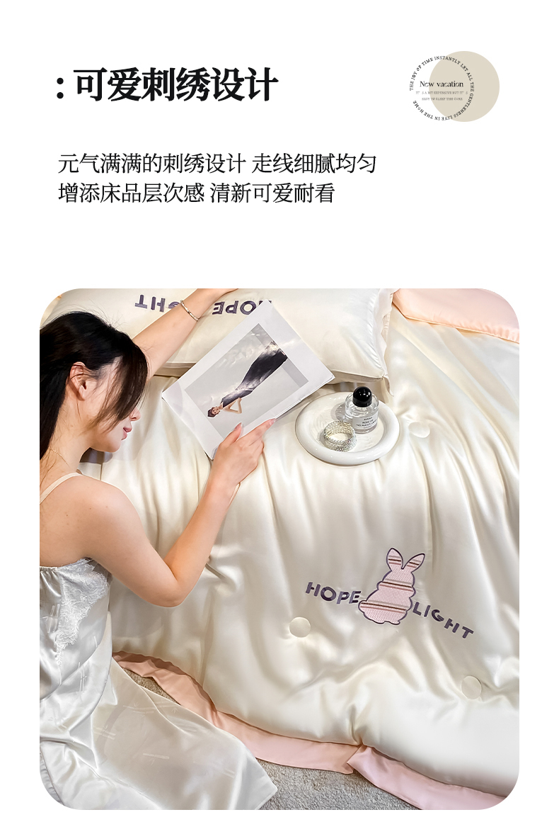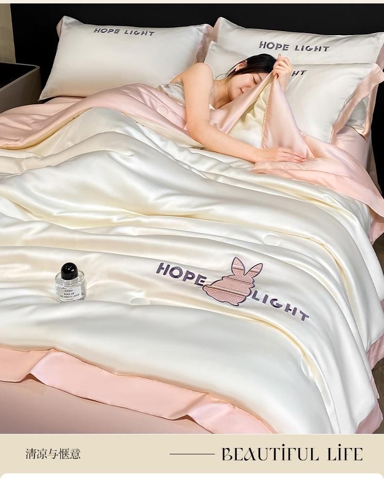 当前位置: 91家纺网 > 商品网购 > 床品套件 > 四件套 > 夏被四件套 > 云棉坊 2026新款水洗真丝冰丝夏被刺绣款-宽边系列 希燃-奶昔白+奶油粉