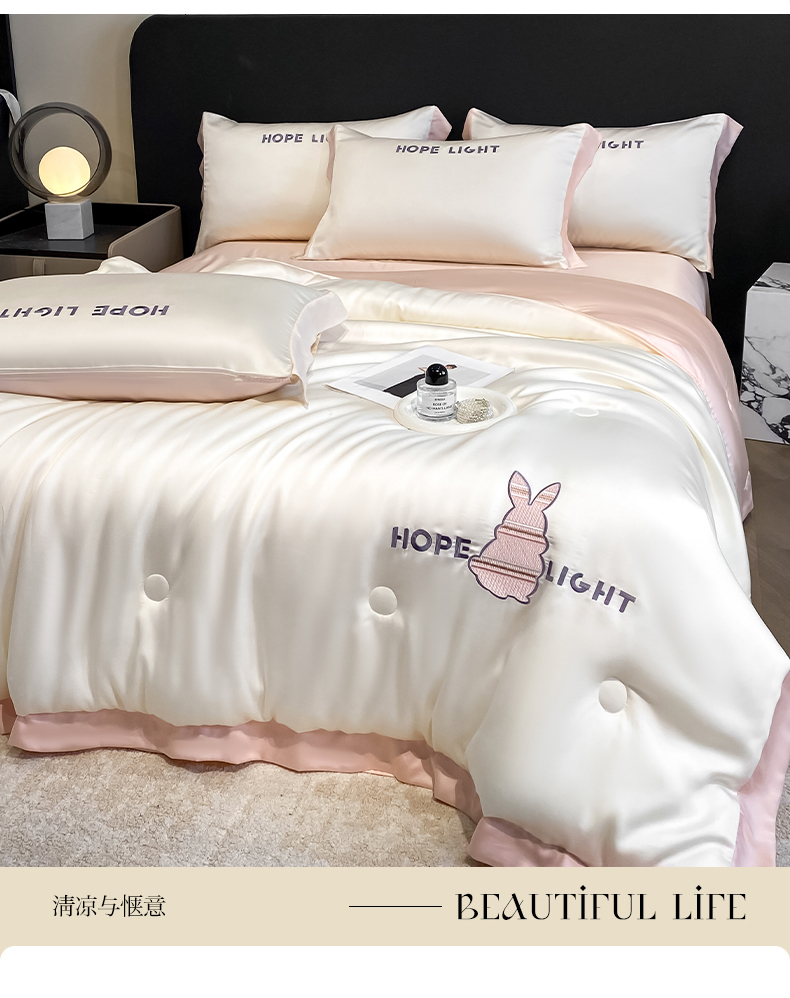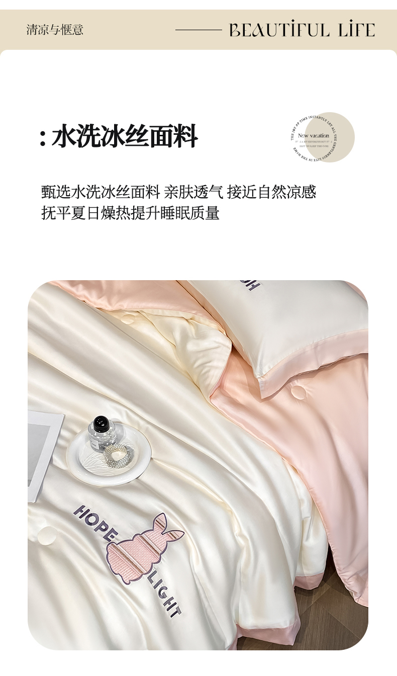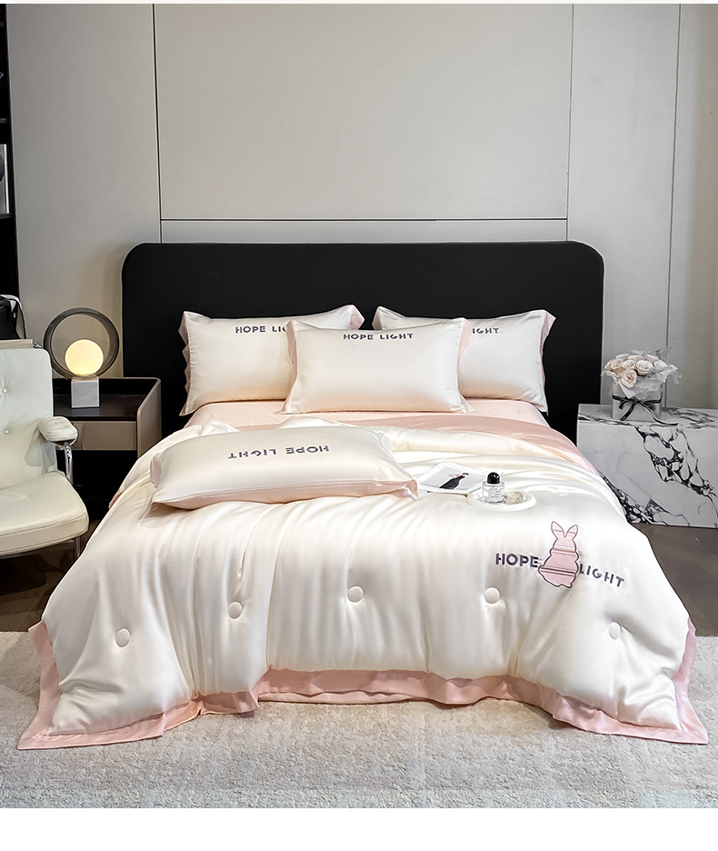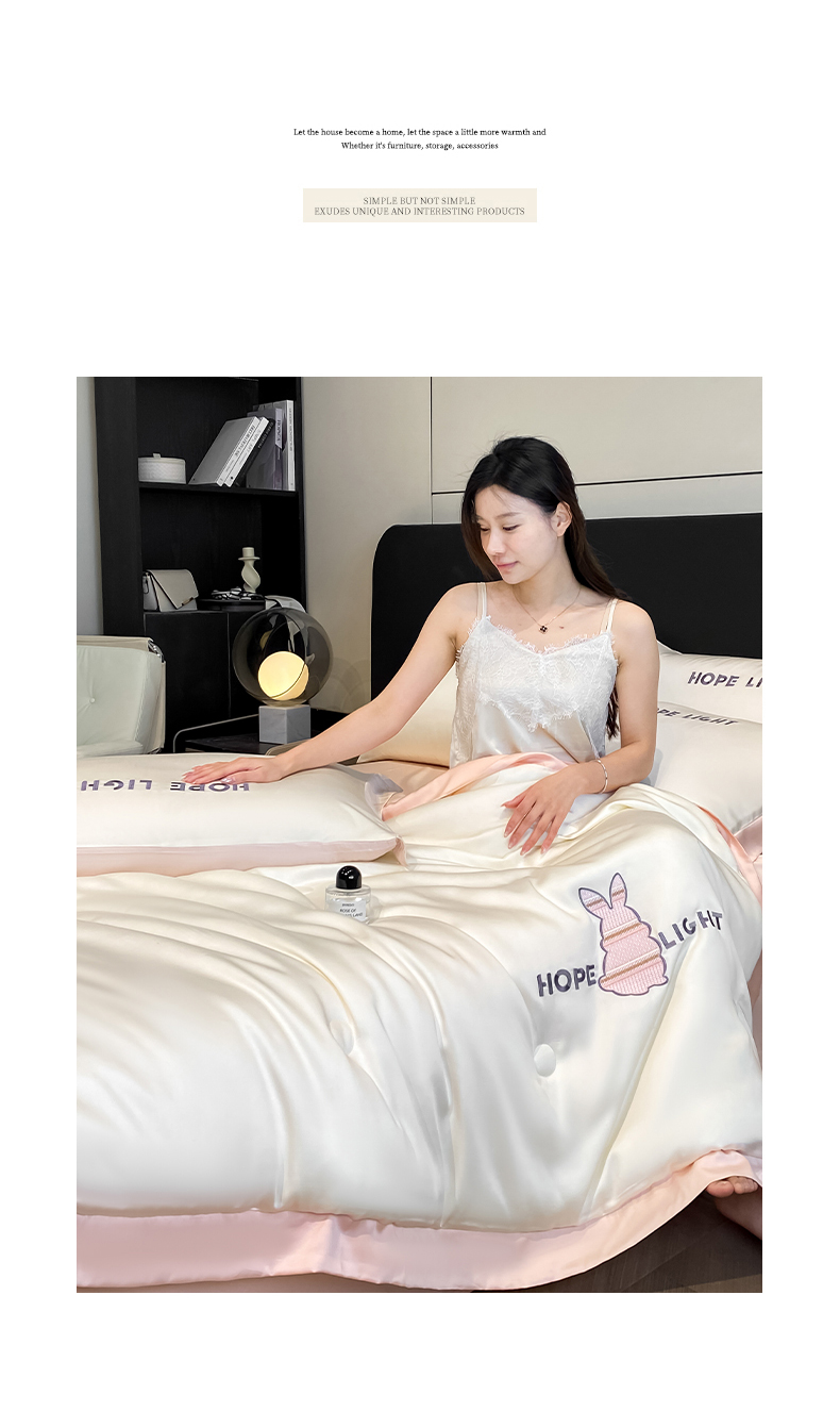 当前位置: 91家纺网 > 商品网购 > 床品套件 > 四件套 > 夏被四件套 > 云棉坊 2026新款水洗真丝冰丝夏被刺绣款-宽边系列 希燃-奶昔白+奶油粉