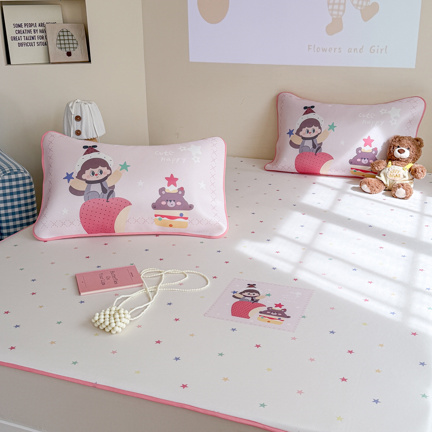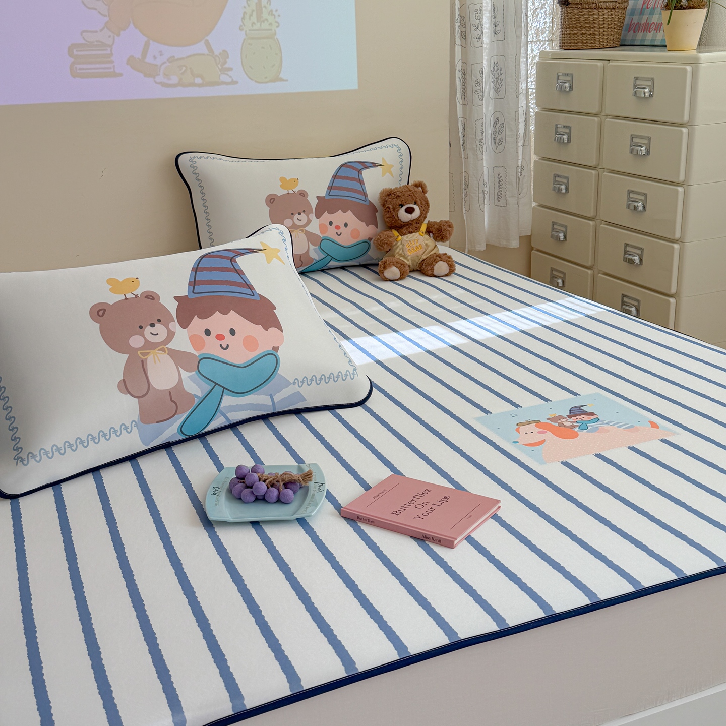 (总)美乐迪家纺 2026新款儿童水光冰丝凉席席子凉席,比熊,冰淇淋小兔,大脸猫,大象,举苹果,梦幻小马,头套小猫,兔头小猫,星星男孩