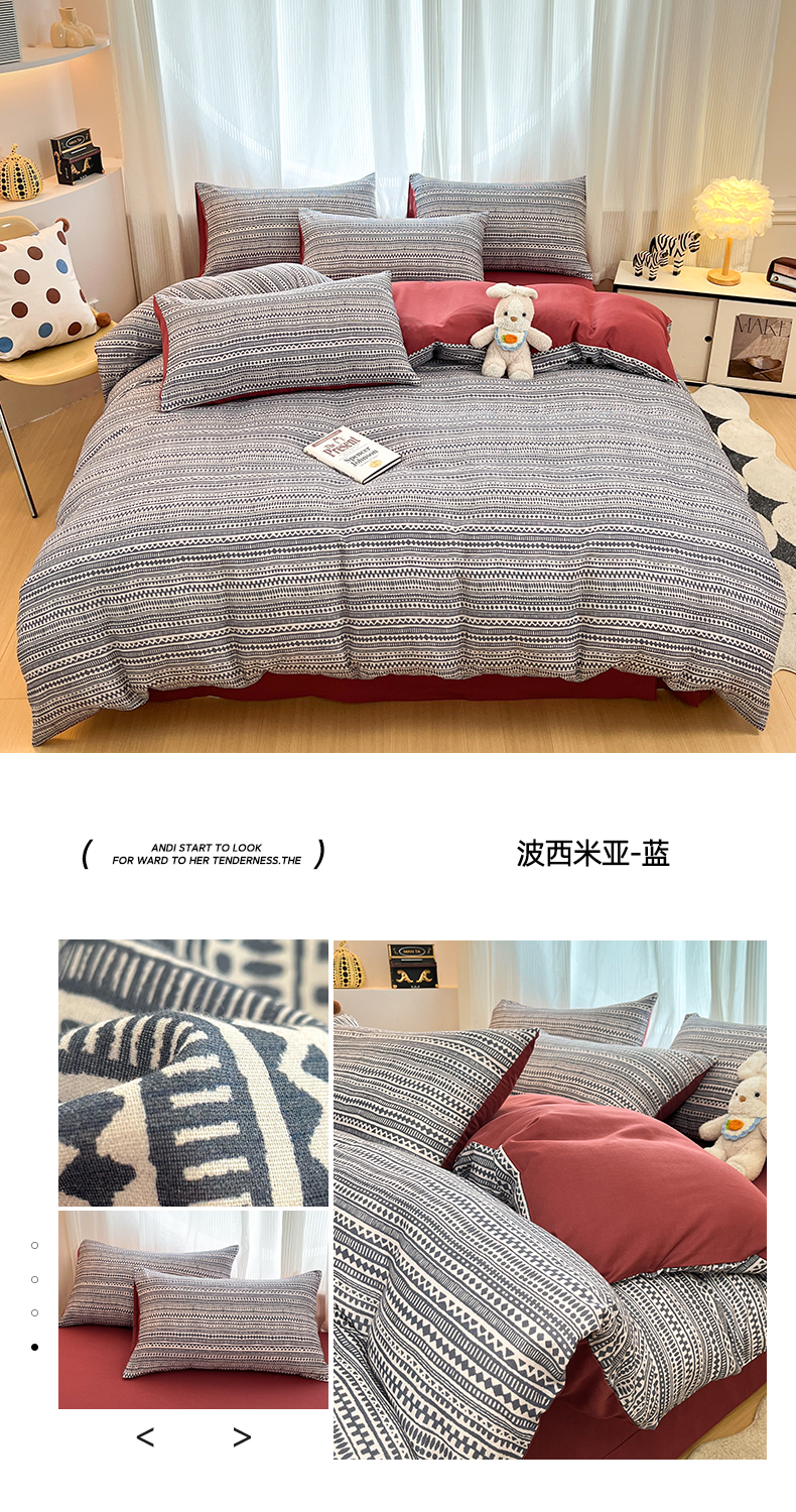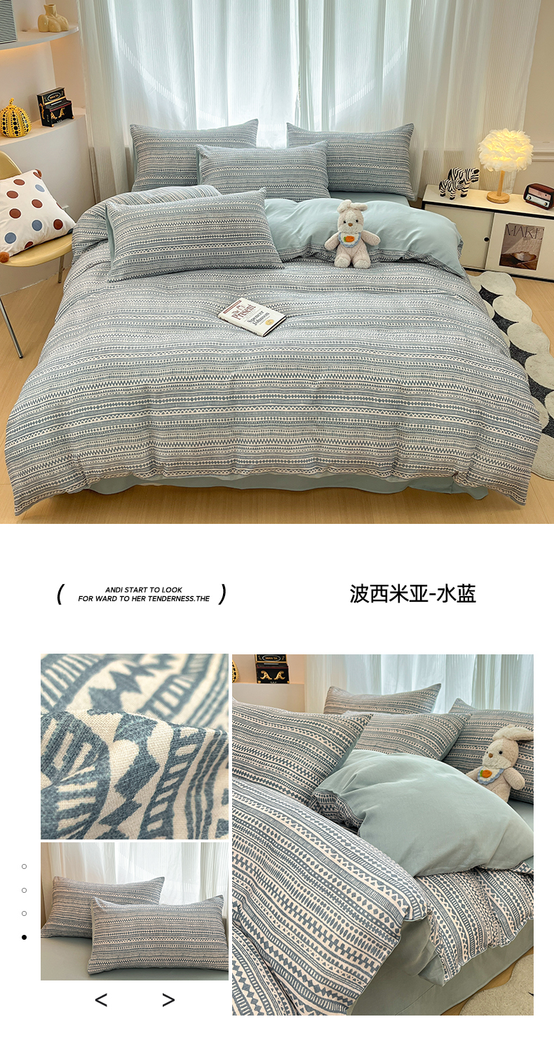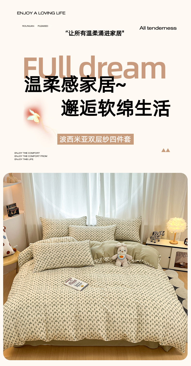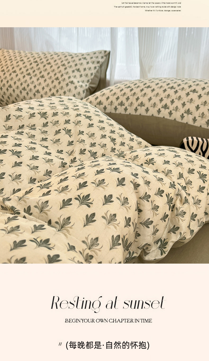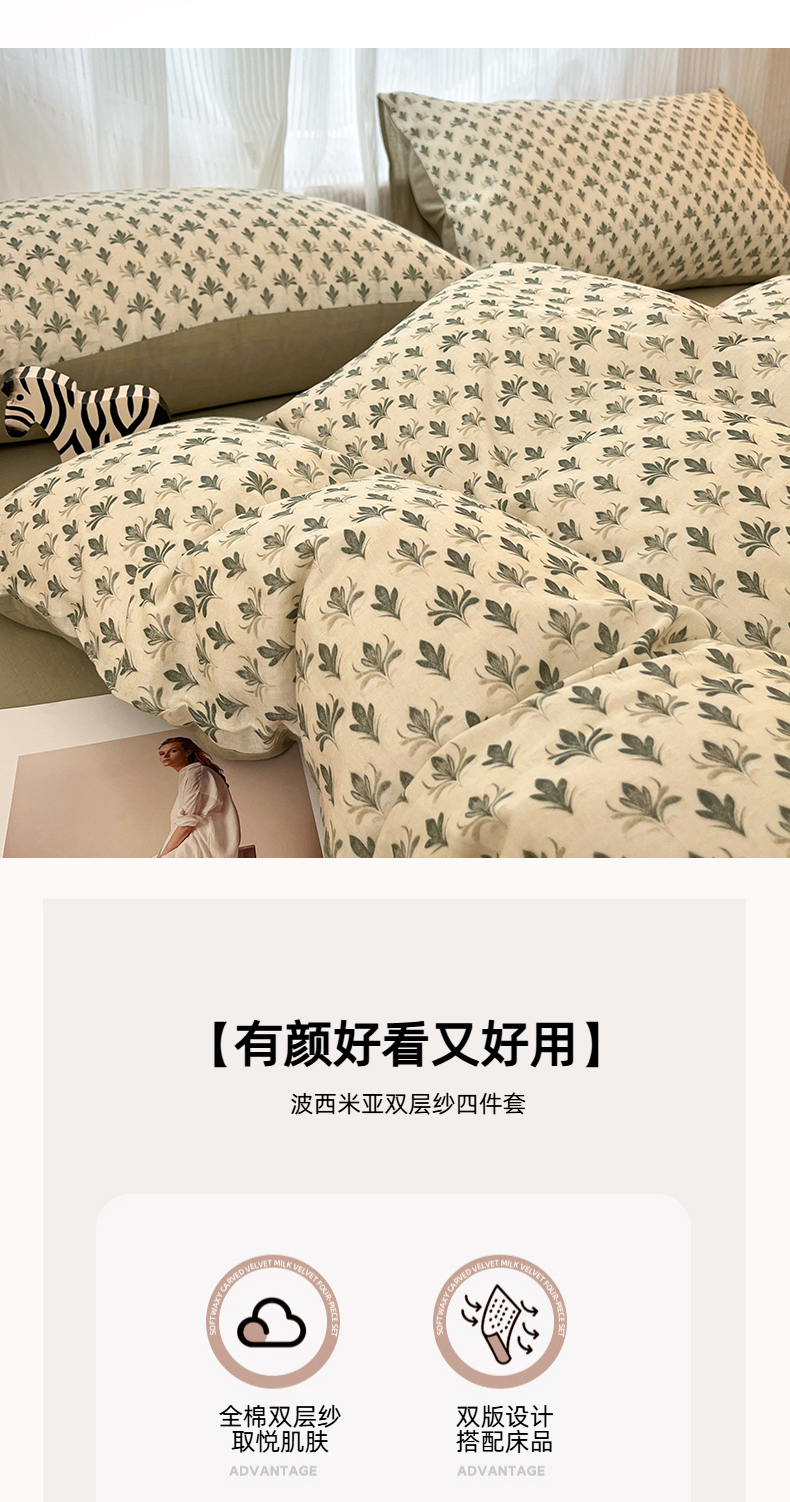 当前位置: 91家纺网 > 商品网购 > 床品套件 > 四件套 > 全棉普通四件套 > 禾时 2026新款A类波西米亚全棉纯棉双层纱四件套 青芜