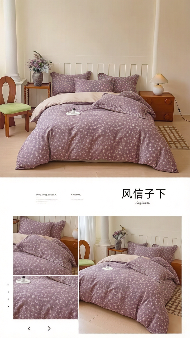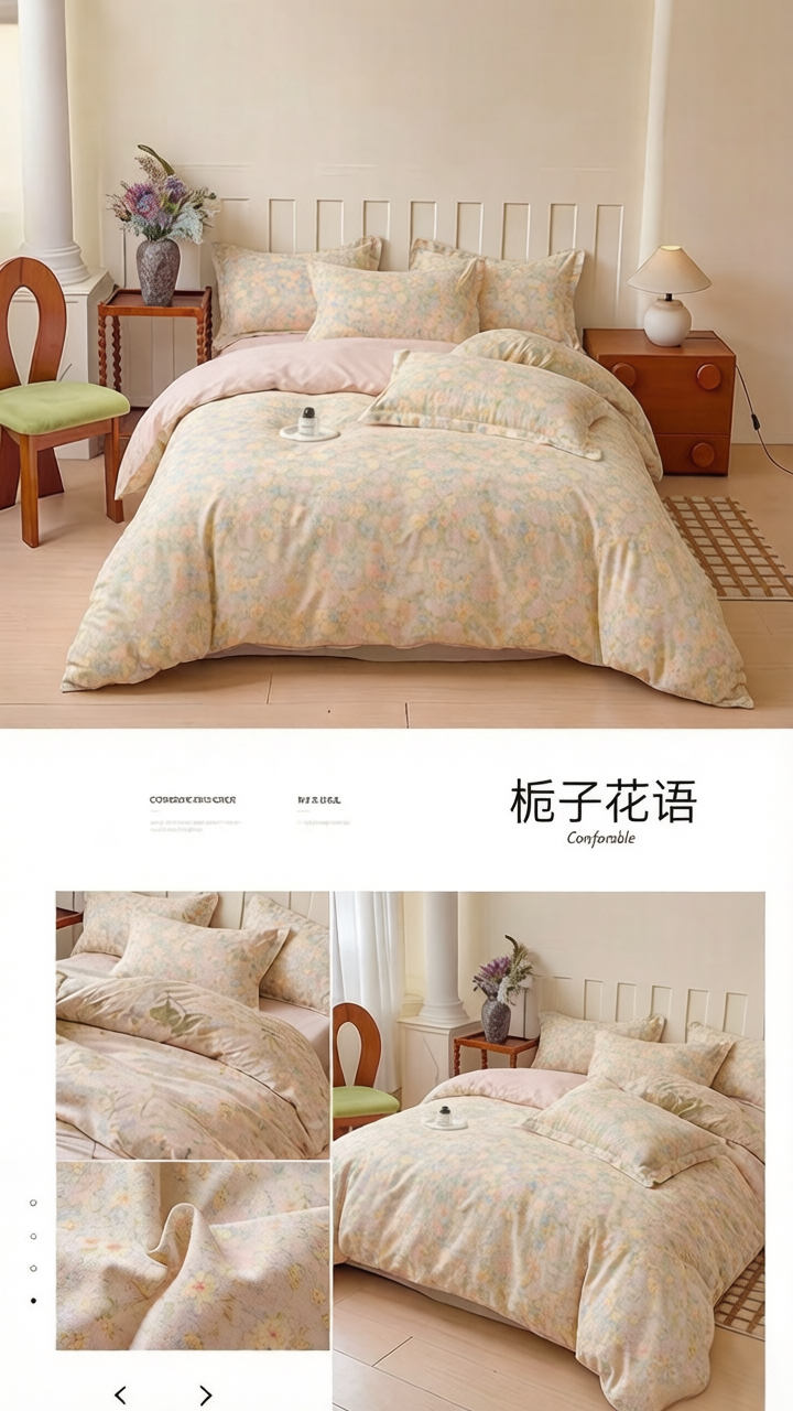 当前位置: 91家纺网 > 商品网购 > 床品套件 > 四件套 > 全棉普通四件套 > U品汇 2026新品纯棉全棉印花四件套小清新卡通花卉13070喷气 雾里花眠-粉