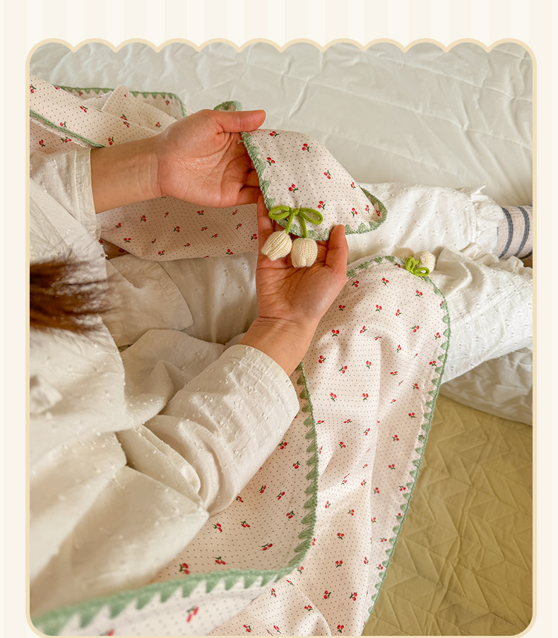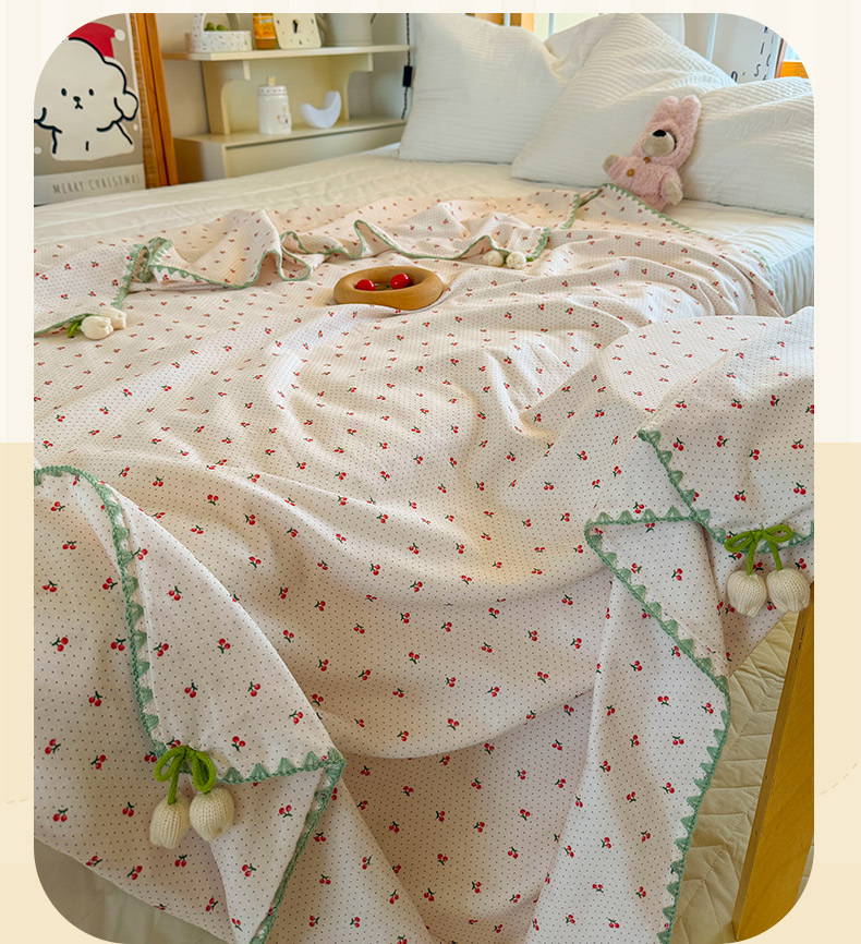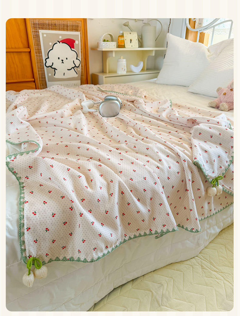 潮邦创意家居 2026新A类全棉双层纱三角针四角郁金香吊坠盖毯—郁金纱语系列【含A类检测报告】 樱桃圆点