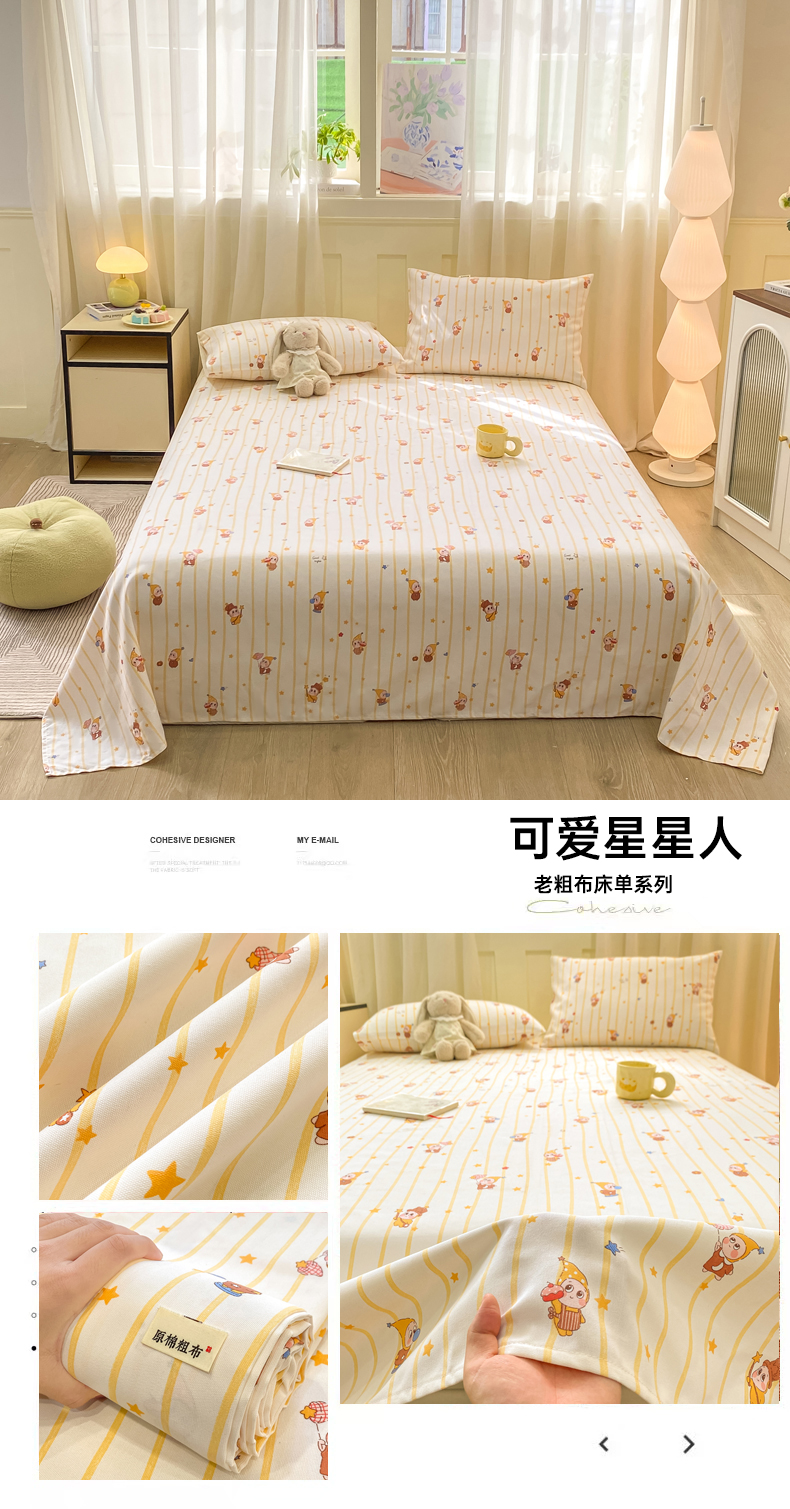(总)优品惠 2026新款老粗布床单凉席席子空调软席单品床垫保护套三件套,格子萌马,kt粉,kt蓝,波西米亚,豆蔻,橘灰条纹,可爱星星人,兰大格,蓝灰卷花,林间小兔,萌兔,青枝漫语,条纹,小南瓜,星星,约定,紫色花语