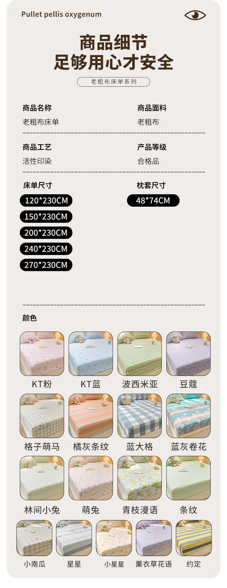 (总)优品惠 2026新款老粗布床单凉席席子空调软席单品床垫保护套三件套,格子萌马,kt粉,kt蓝,波西米亚,豆蔻,橘灰条纹,可爱星星人,兰大格,蓝灰卷花,林间小兔,萌兔,青枝漫语,条纹,小南瓜,星星,约定,紫色花语