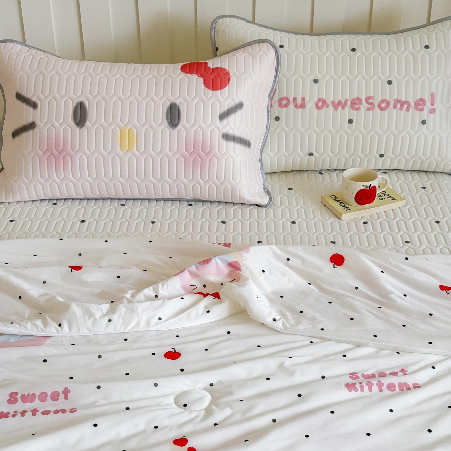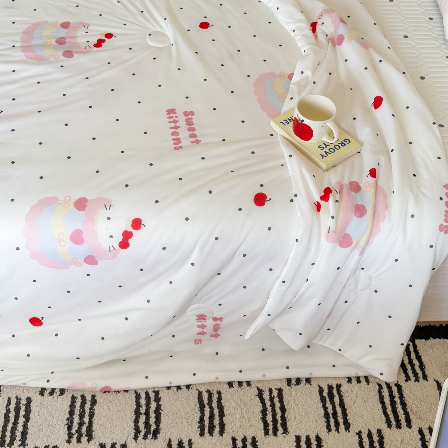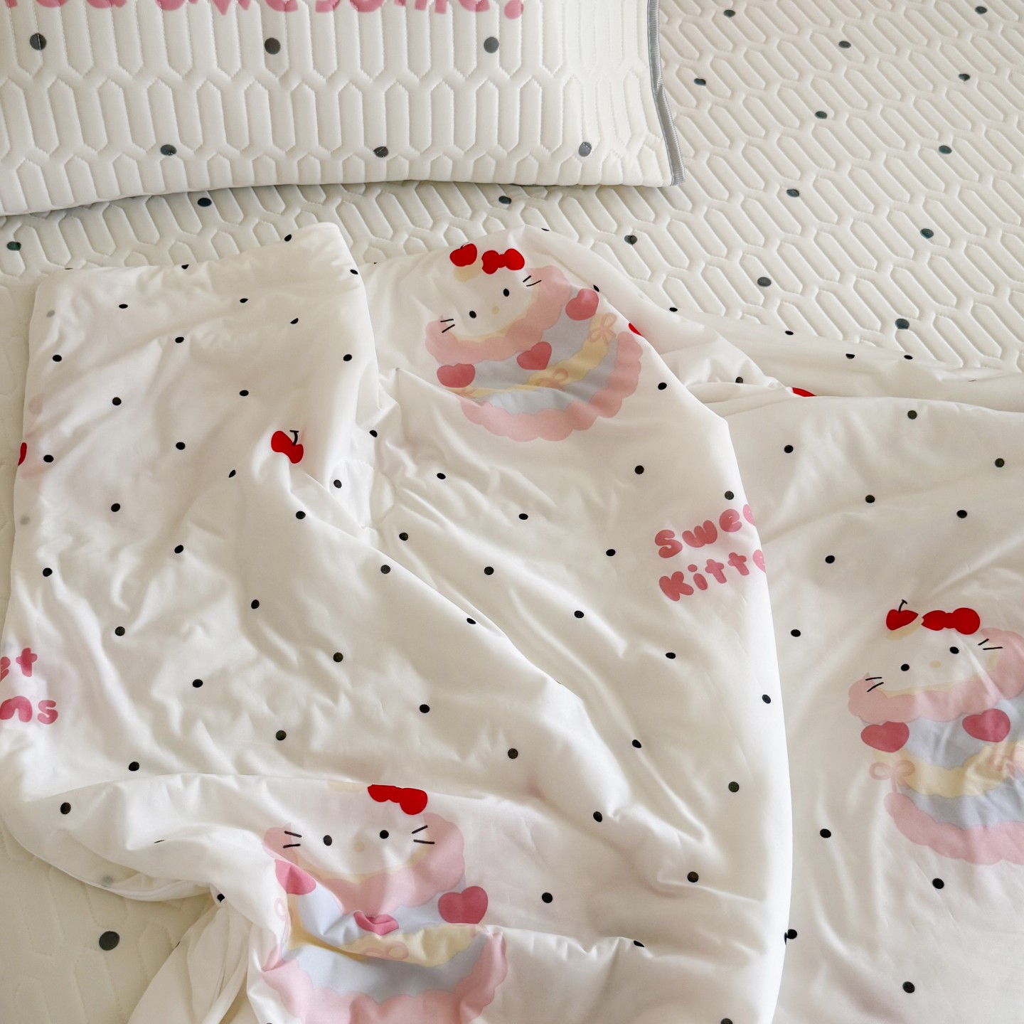 商品名称:顾里家纺 2026新款韩系少女凉感冰皮夏被夏凉被空调被-第二组 波点粉猫
